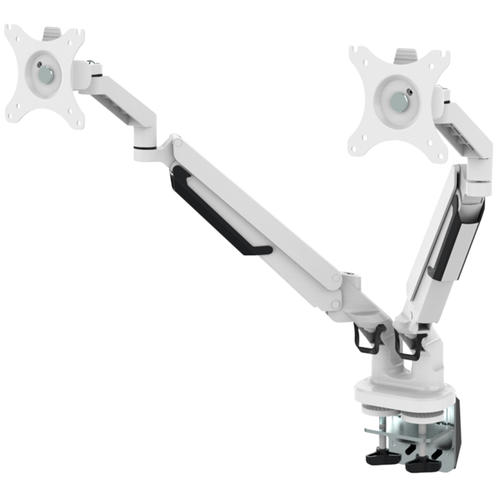 FlexiSpot 17"-32" Dual Gas Spring Monitor Stand - Aluminum Arm - White - Swivel 180deg - Quick Release VESA Plate - VESA 75 & 100mm - Max Load 5KG Per Arm - Clamp Or Grommet Installation - 5 Years Warranty