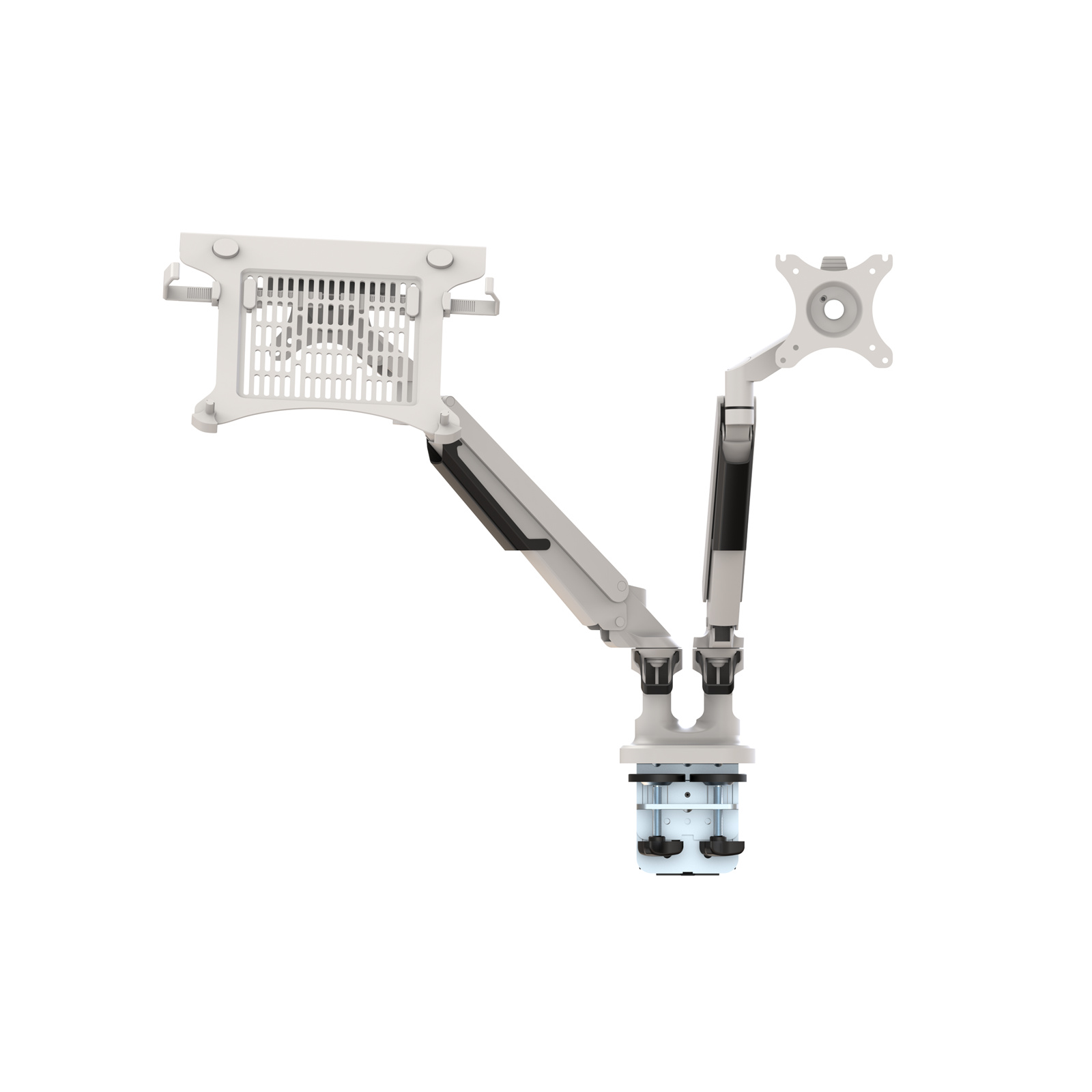 FlexiSpot Ergonomic 17"-32" Single Monitor Arm With 10.1"-17.3" Laptop Stand Gas Spring Mount - White - Max Load 5KG Per Arm - Clamp Or Grommet Installation - 5 Years Warranty