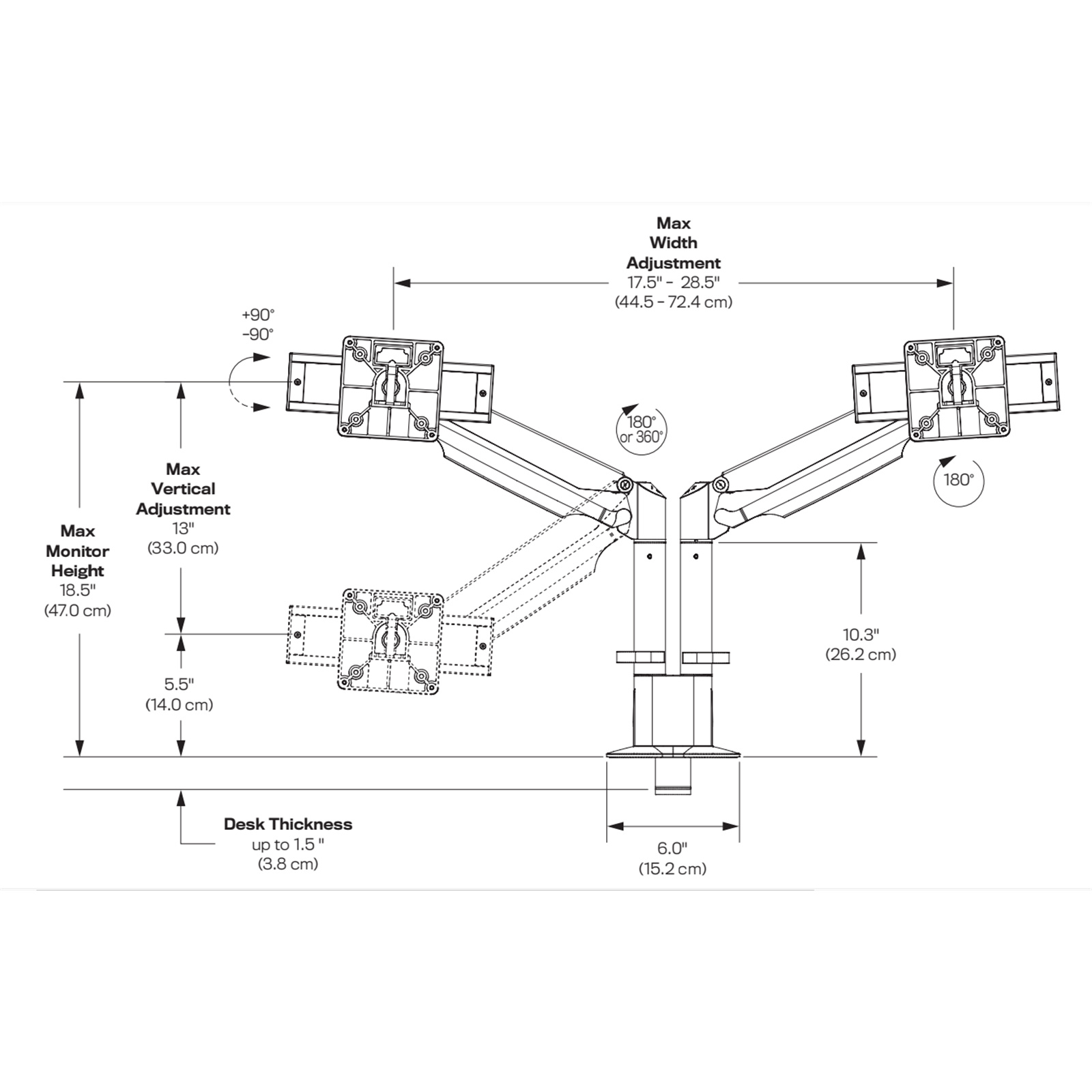 - Ergonomic: Allows monitors to be placed at an ergonomically correct distance from the user's eyes to increase comfort and productivity no matter where a person is working.