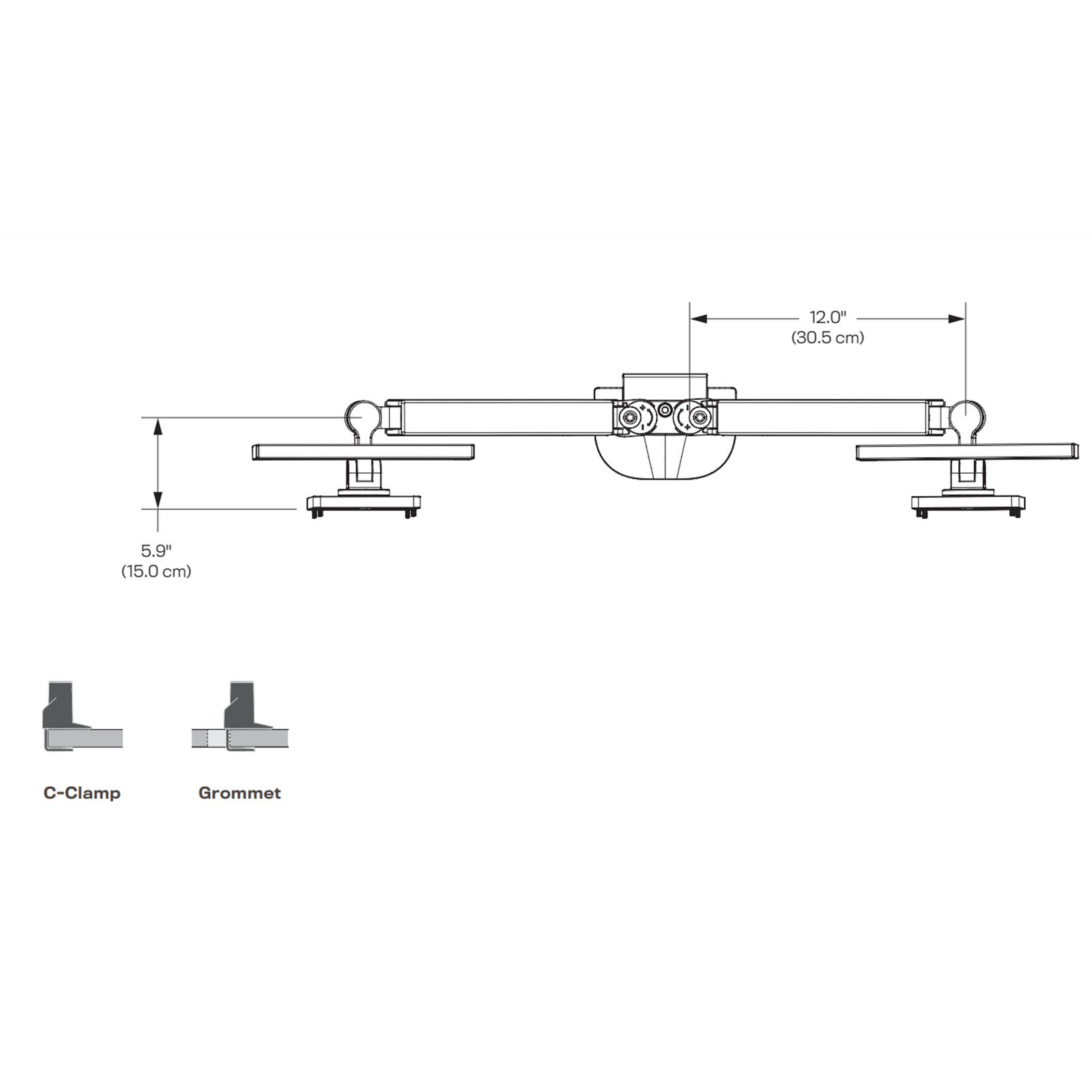 HAT Collective E2 Dual Monitor Arm With Top Down Clamp - White Supports a Single Monitor from 1-9Kg for Flat monitors and up to 7.2Kg for curved monitors