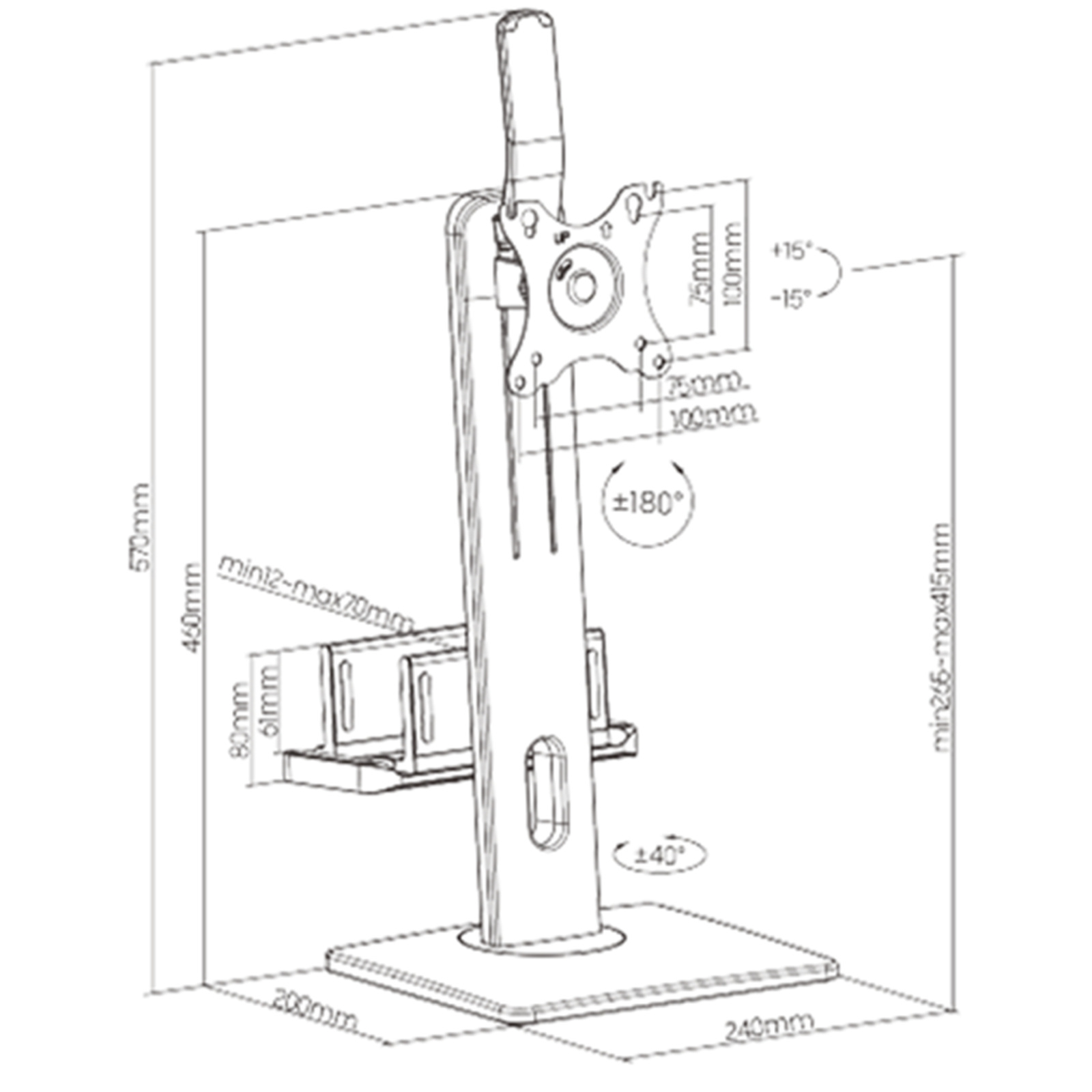 - Single Screen Vertical Lift Monitor Stand With Thin Client CPU Mount