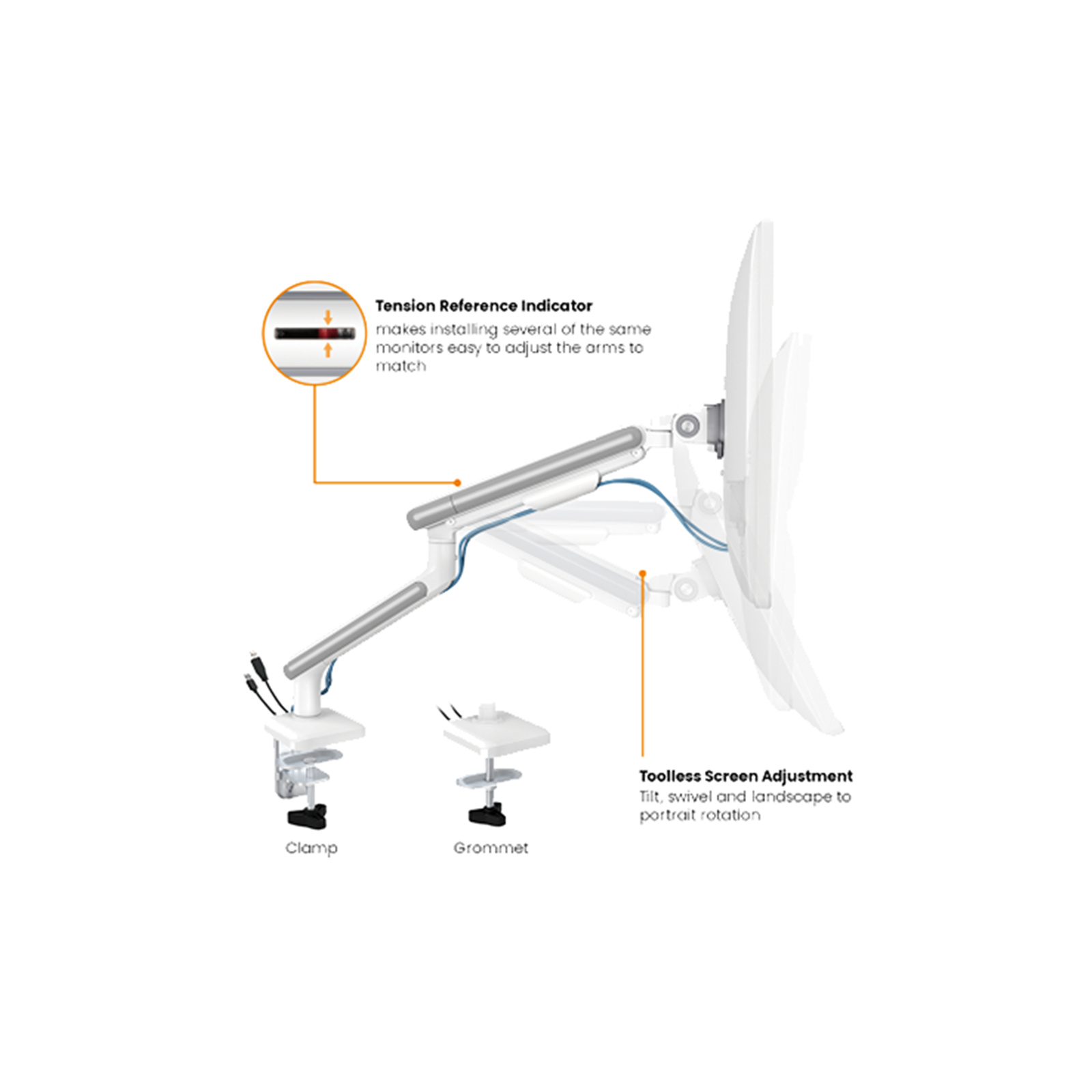 - Tension Indicator: designed for spring tension alignment when installing multiple monitors