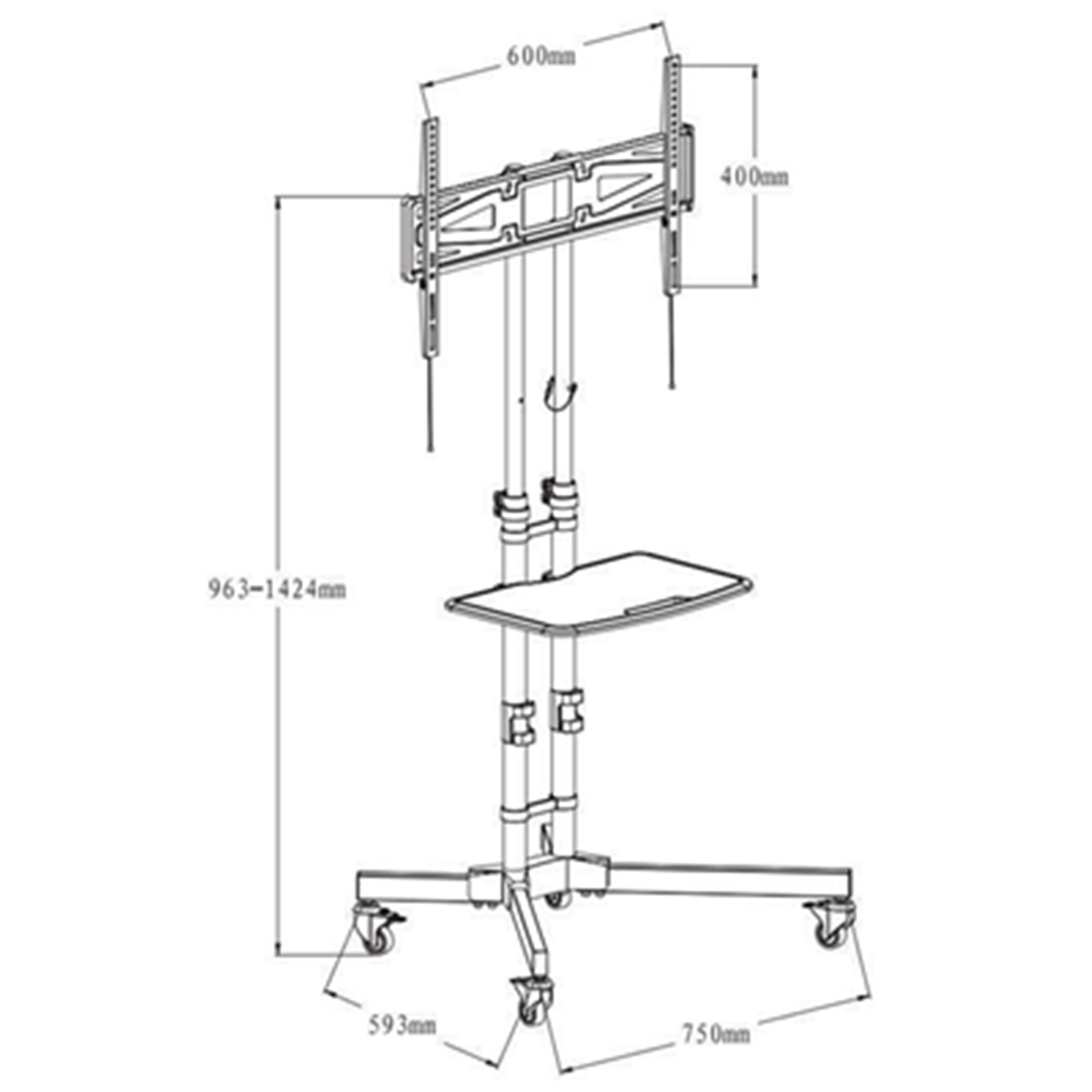 This carts is great for schools, hotel, conference rooms, lobbies, hospitals, laboratiories, office building and other locations. It can hold plasma, LCD, LED TV's size up to 65" with weight up to 40kgs. Aluminium column comes with a 6mm shelf for DVD player or other device.