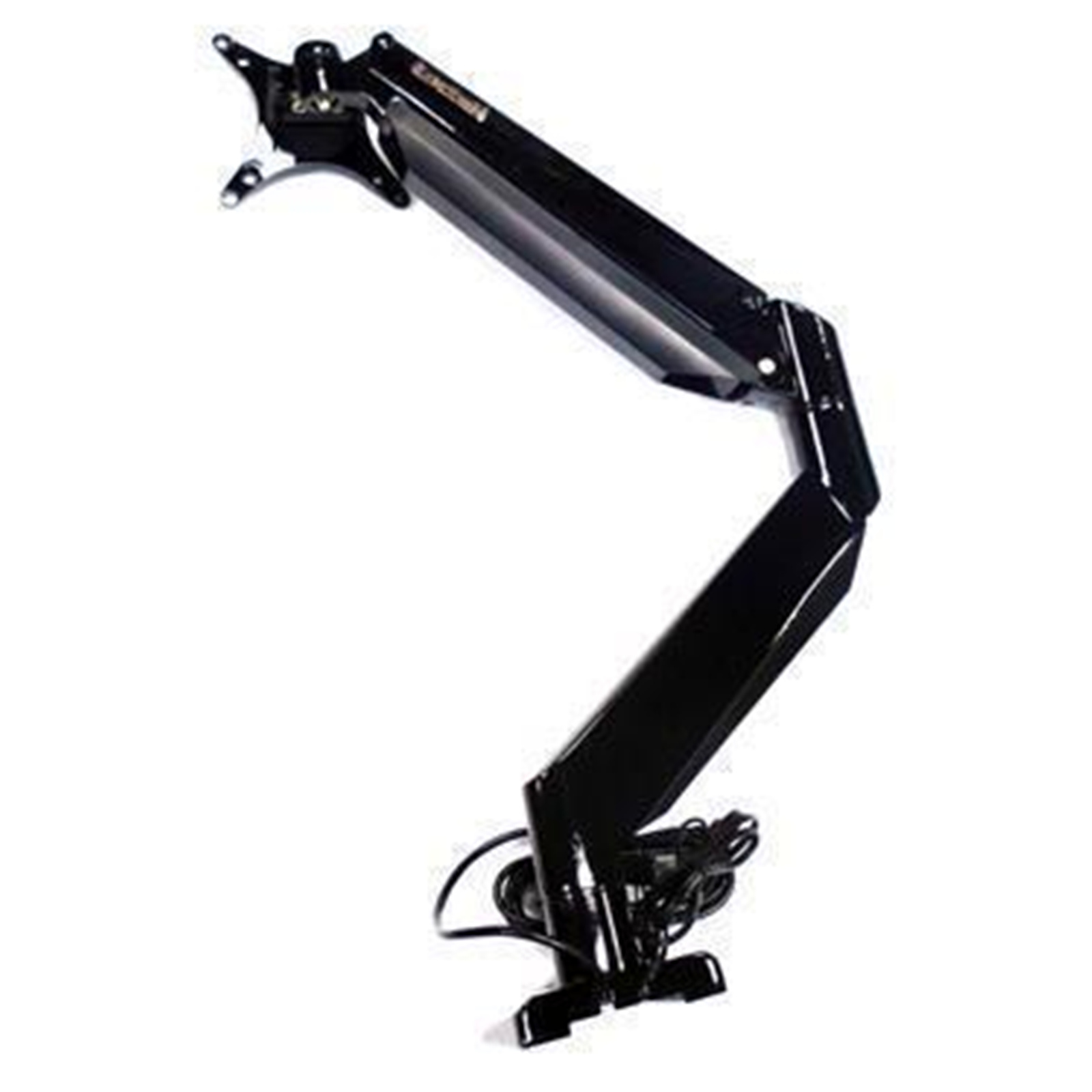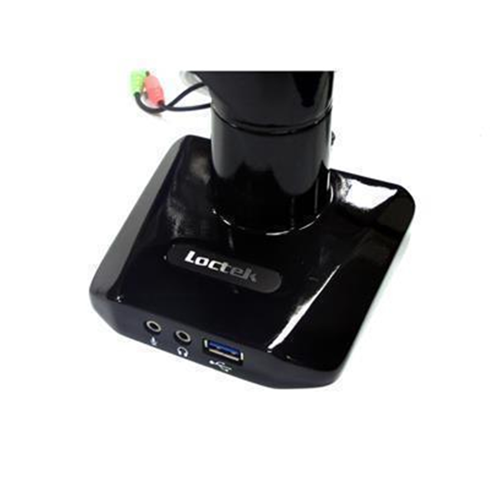 The Loctek DLB511L represents the highest quality monitor mount available on the market today. Made from extremely strong aircraft-grade aluminum, the DLB511L can support a 34" monitor weighing up to 44 lbs. But it will swing effortlessly away if you need to move the monitor to the side to accommodate an impromptu meeting at your desk! The DLB511L features a built-in USB port, a microphone jack, and a headphone jack in the base. Easily Charge your phone, listen to your tunes, or join a conference call with this convenient feature.
