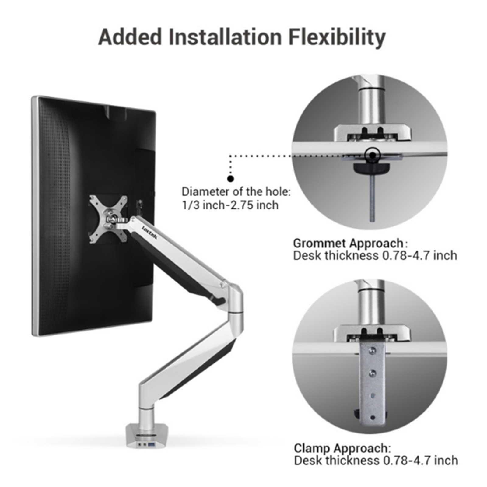 Your monitor mount arm comes with sturdy C-clamp and grommet mount base for quick installation. Set up your new mount and enjoy the flexibility without worrying about it coming loose.
