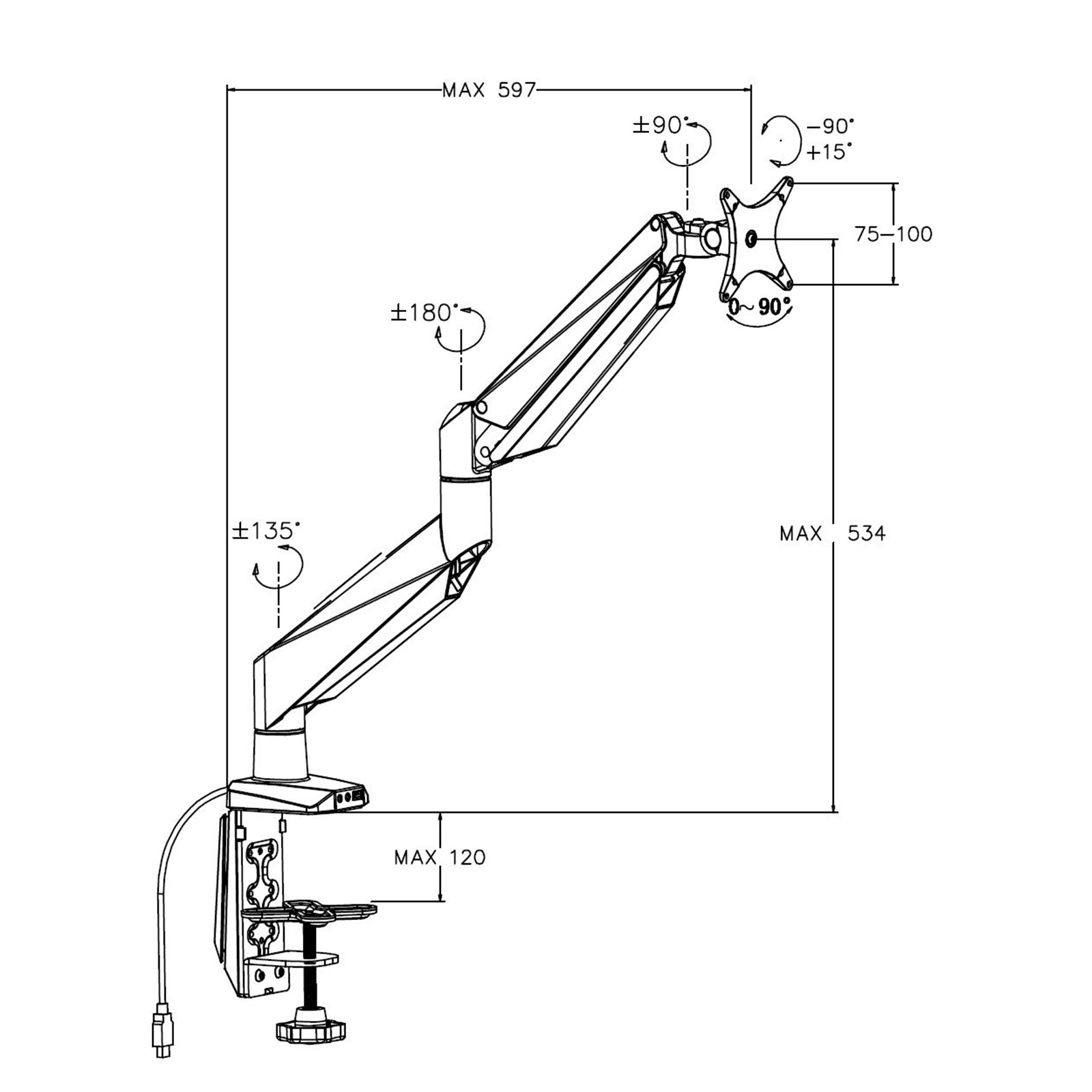 DLB511L Heavy-Duty Aluminum Gas Spring Monitor Arm with USB Port for 24-35" Monitor