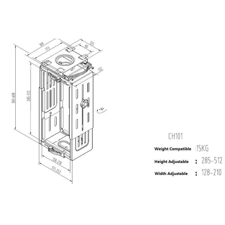 Padding dots are included in the CH1's design to better protect your PC from scratches or damage while encased in this secure holder. Height adjusts from 381-608mm and width adjusts from 133-215mm to fit most standard PCs.