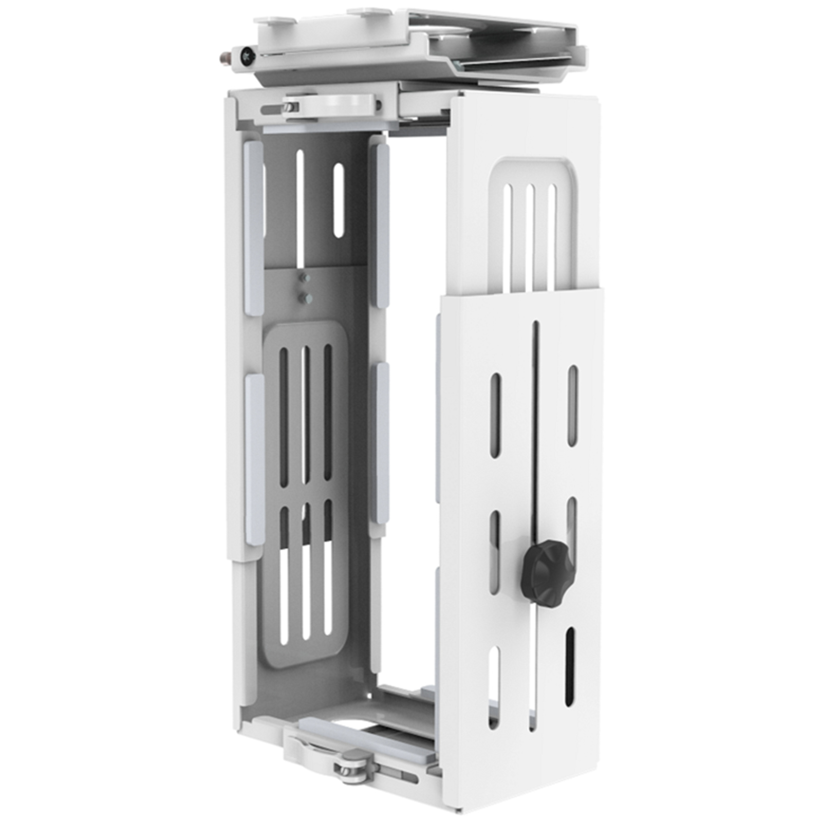 Give your central processing unit (PC) a secure spot on your workstation with an under-desk PC holder. Mounting your PC beneath your desk keeps it safe from accidental damage caused by spills or tipping, and saves space on your floor or desktop.