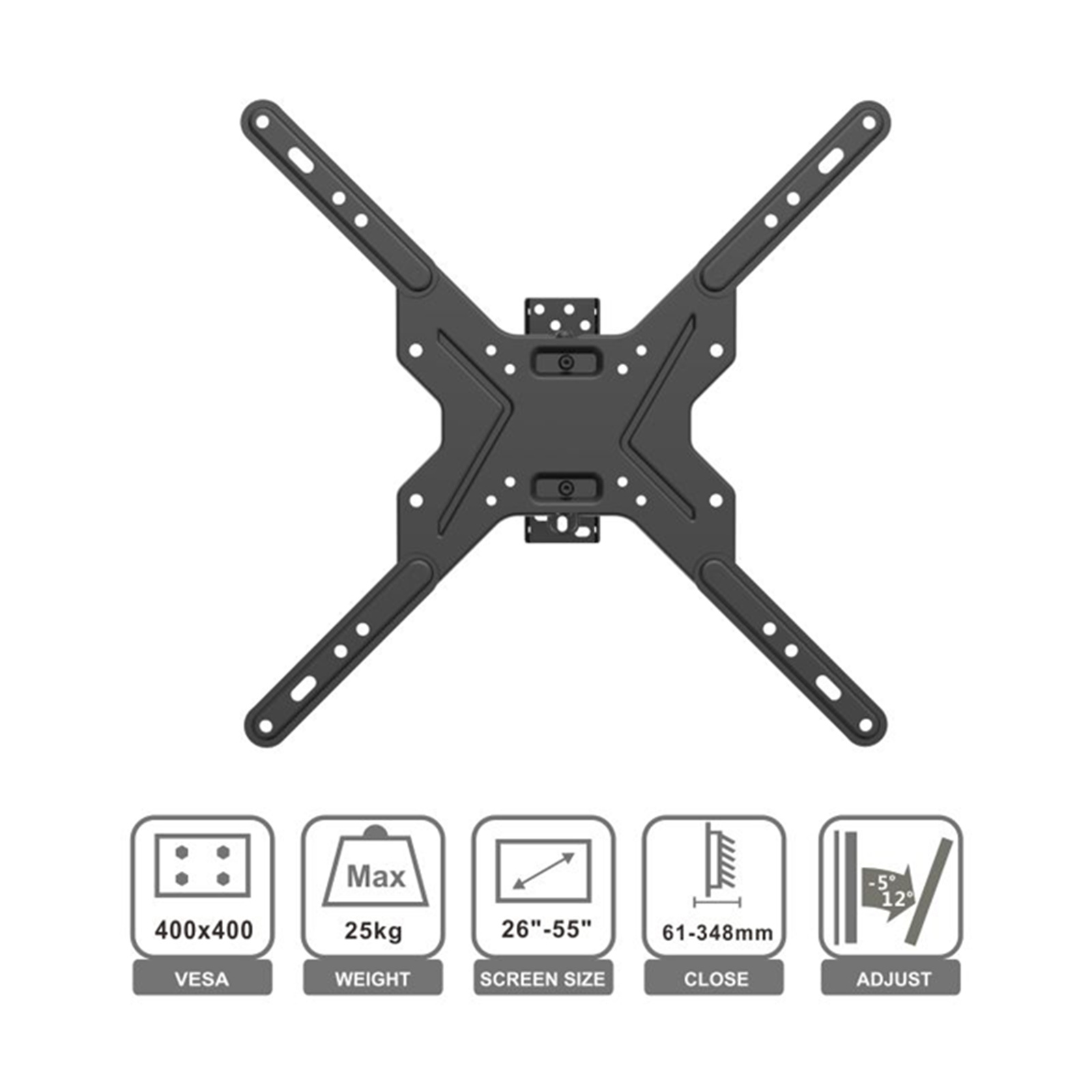 Loctek Eco Mount, 26"-55" Full Motion TV Wall Mount, - Max Load 25kg - Max VESA 400x400mm - Tilt Angle -5 +12deg - 5 Years Warranty