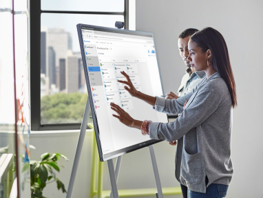 Roam was created to perfectly complement Surface Hub 2 for collaboration anywhere. With a storage tray and cord management designed to hold an optional APC™ Charge battery for untethered use.