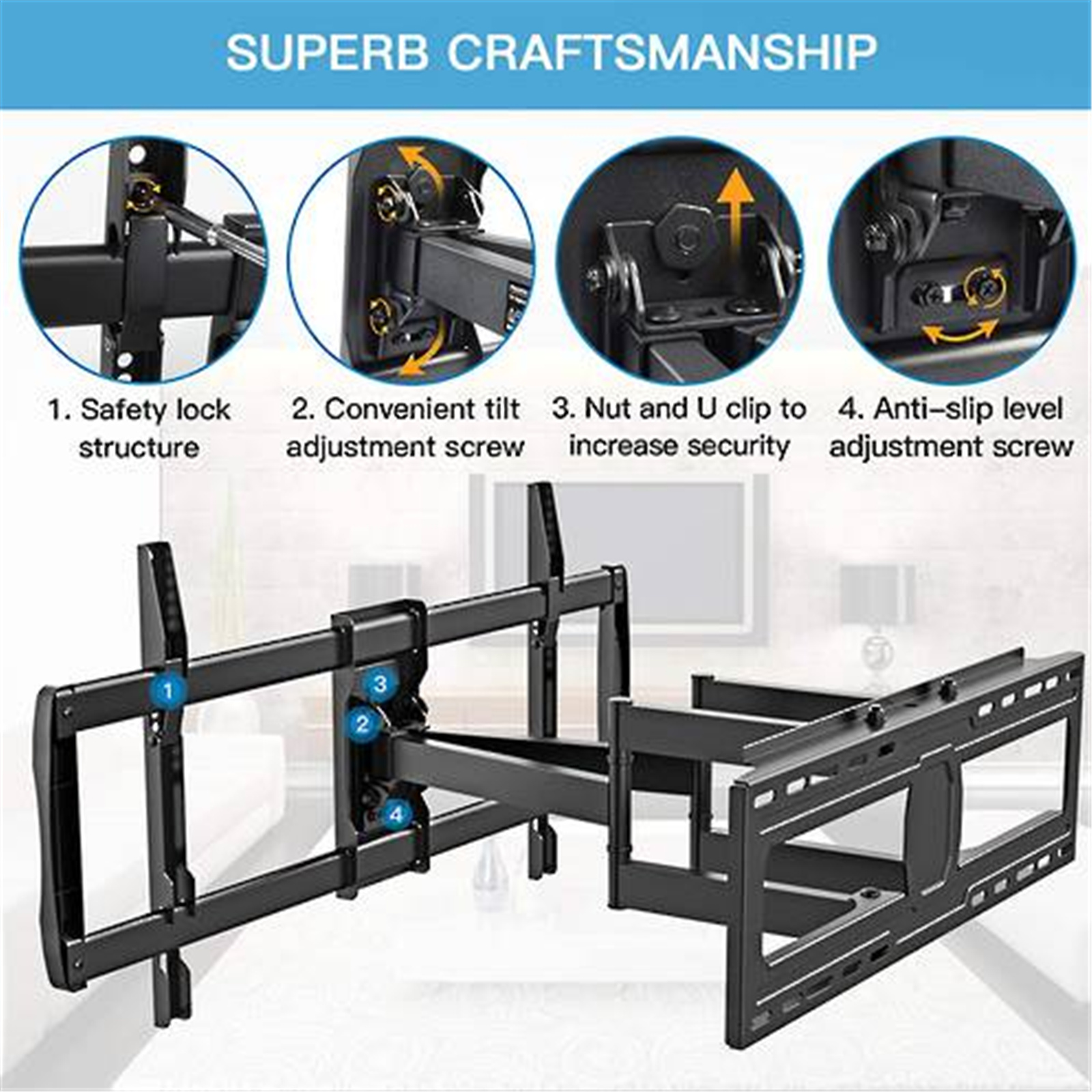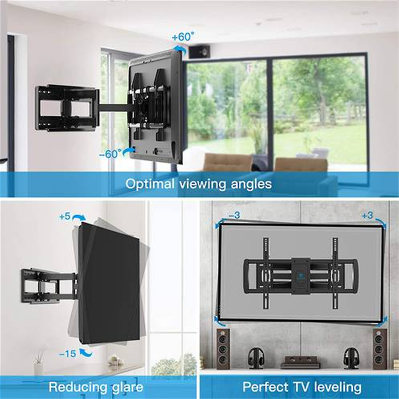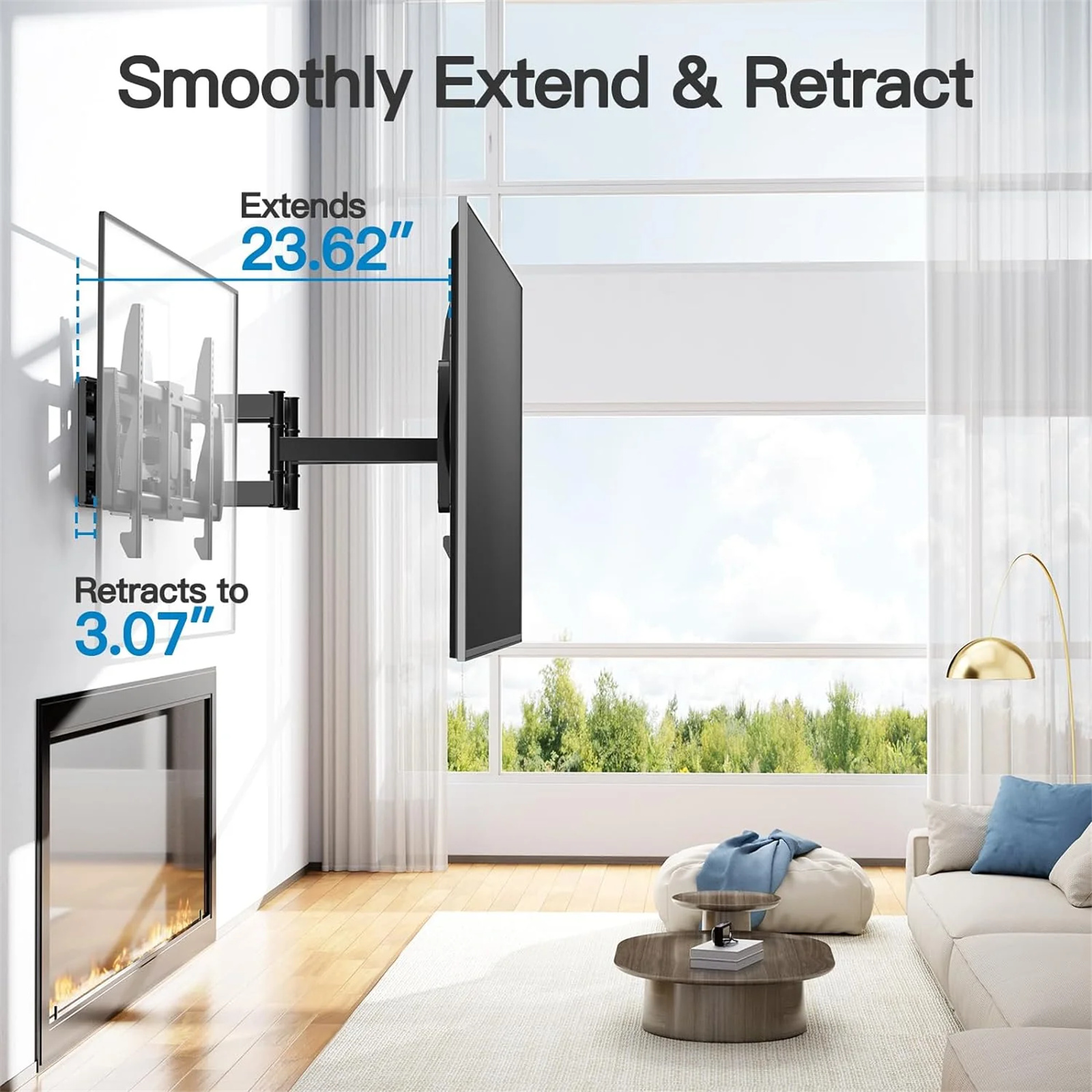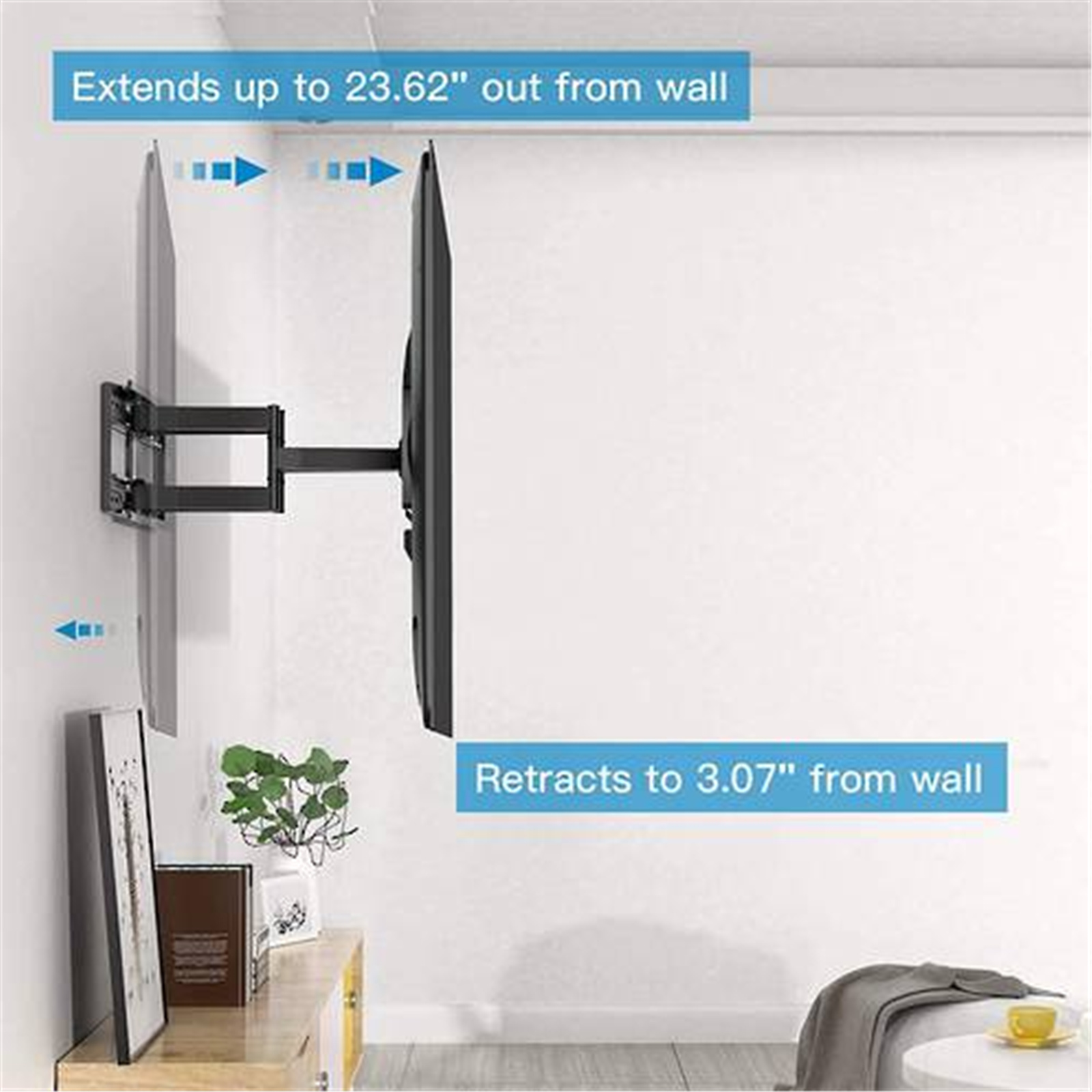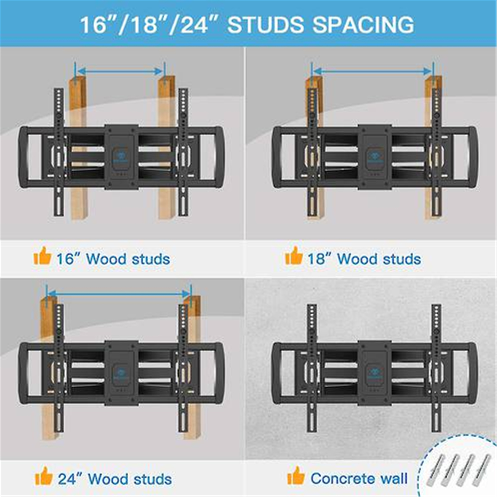 PERLESMITH PSXFK1 Swivel TV Wall Mount Bracket fits most 50 inches to 90-inch flat-panel LCD/LED TVs up to 165lbs, compatible with max VESA patterns 800x400mm, and allows wood stud spacing up to 24". The two heavy-duty strong articulating arms to hold your TV steady and securely even when the arms extend to the furthest distance.