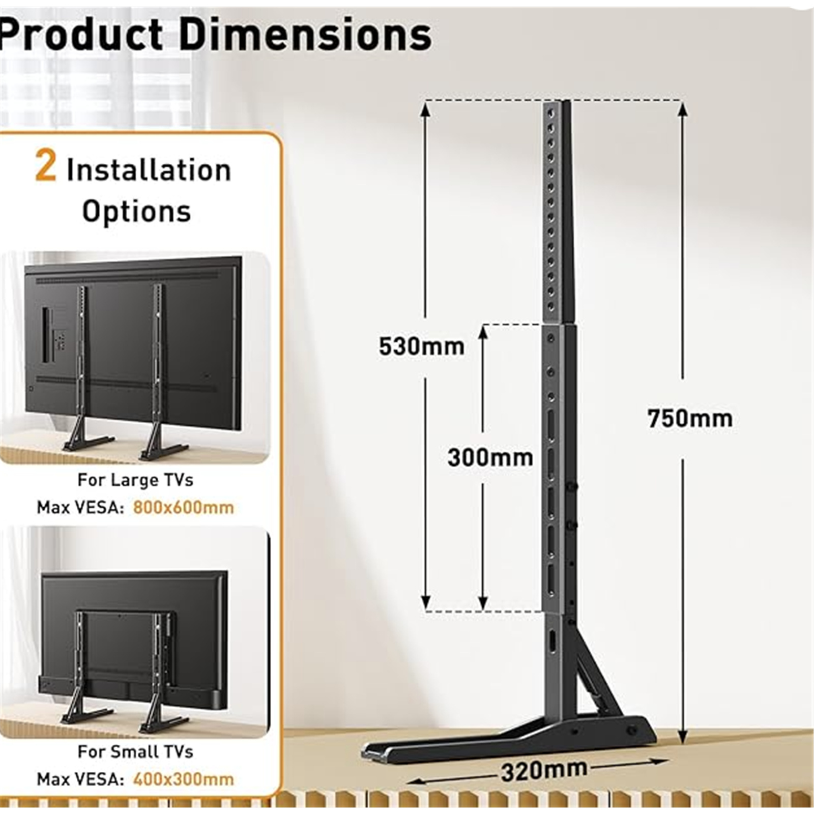 This TV leg can be flexibly detached into 2 installation options, allowing you to freely choose a more suitable one according to the width of your TV. Each universal TV stand comes with detailed installation instructions and assembly hardware, easily installed within 10 minutes. Once installed, the universal TV stand is ready for immediate use, no need to drill holes in the wall or hire expensive professionals for help.