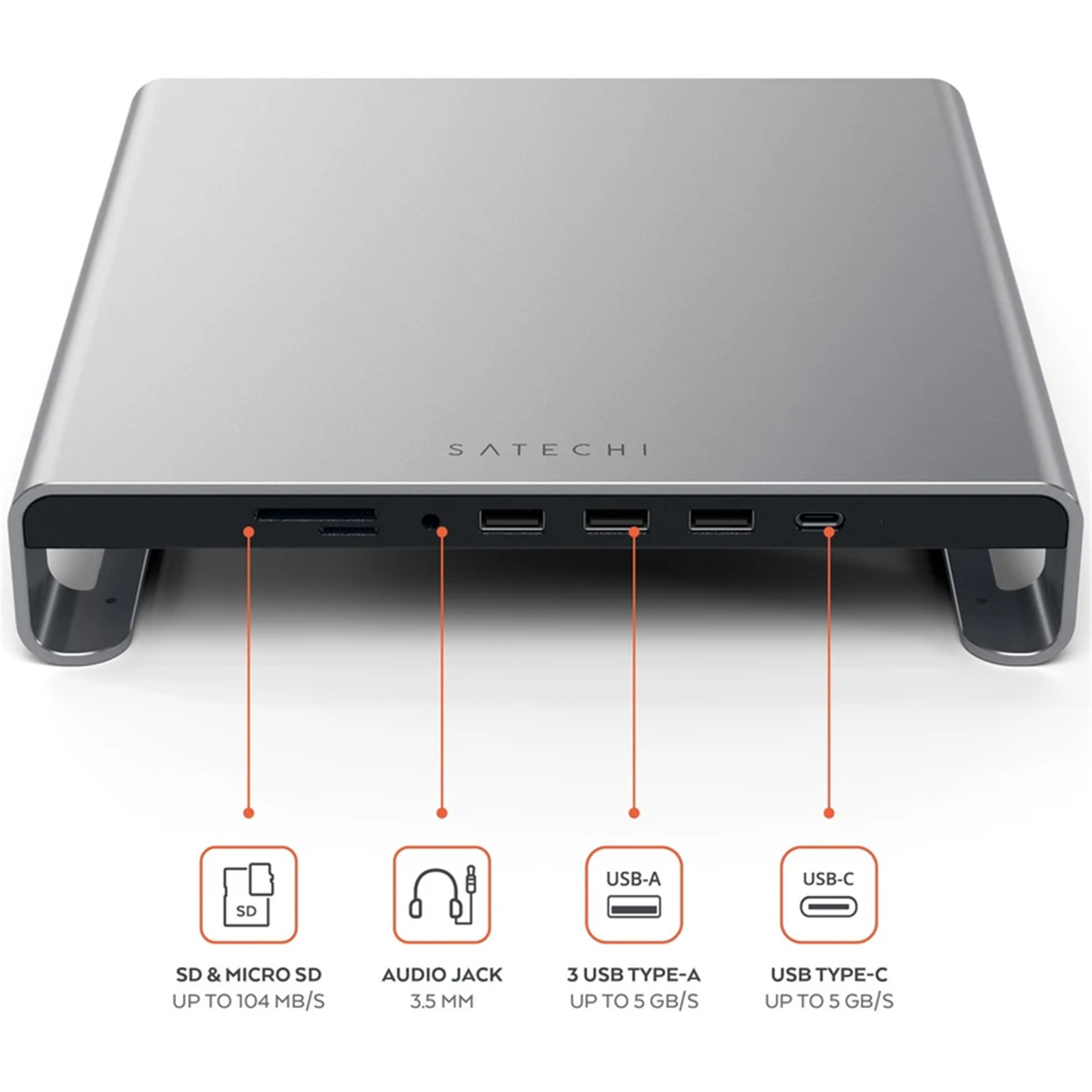 SATECHI USB-C Aluminium Monitor Stand Hub for iMac - Space Grey