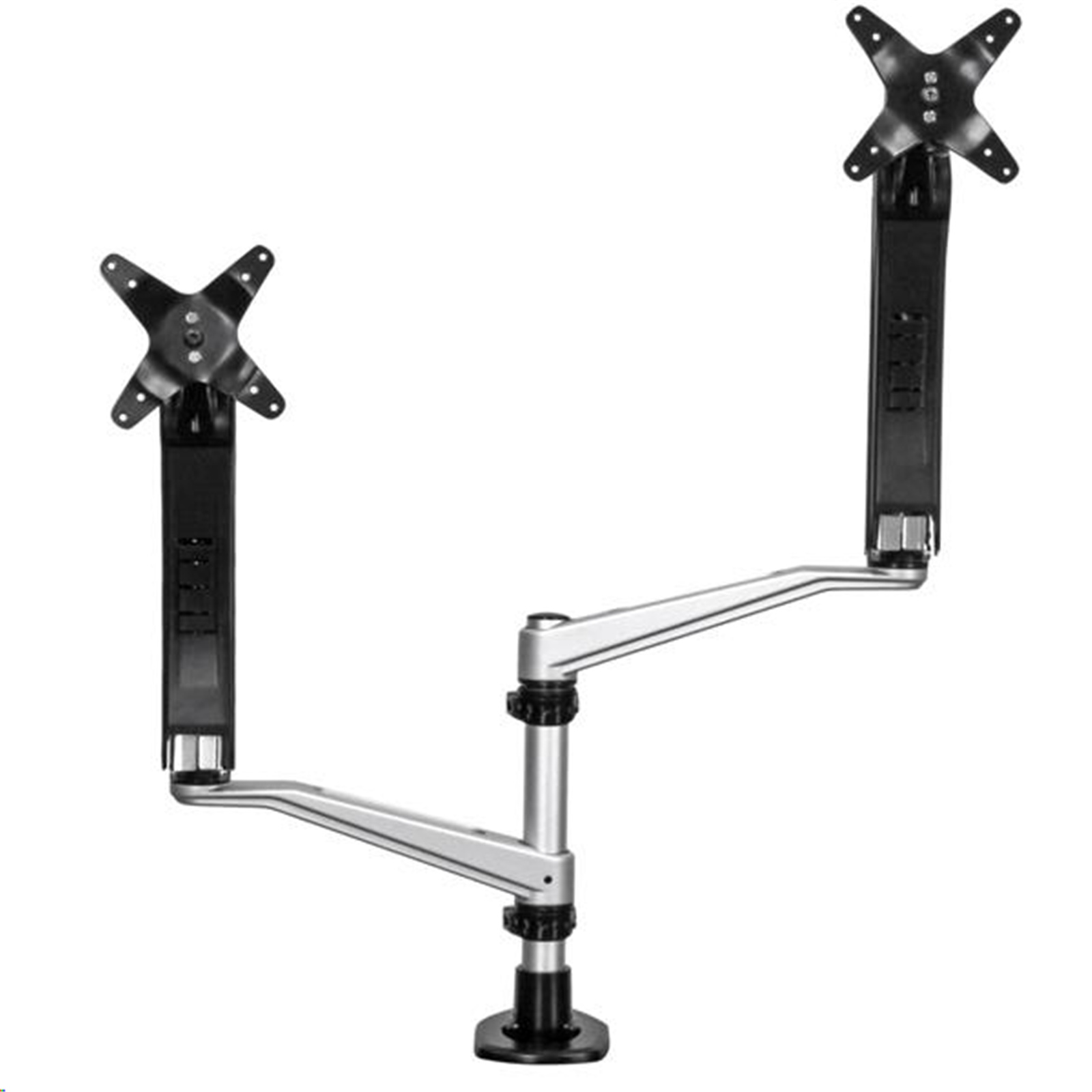 Create a more ergonomic workspace that matches your exact needs, while freeing up valuable space on your desk or table. The interchangeable arms with quick-connect assembly let you design a dual-monitor setup to suit your specific workstation. In a side-by-side setup, the dual-monitor mount supports two monitors from 12" to 30". It's ideal for numerous uses in the business or home office including graphic design, gaming, photo editing and many others. In a stacked setup, the dual-monitor mount supports two monitors, from 12" to 24". A vertical setup makes comparison easy in many applications including financial analysis, web design, reviewing spreadsheets and many others. Please note: To support two stacked 24" monitors, the height of each monitor (including the bezel around the display) cannot exceed 14" (35 cm).