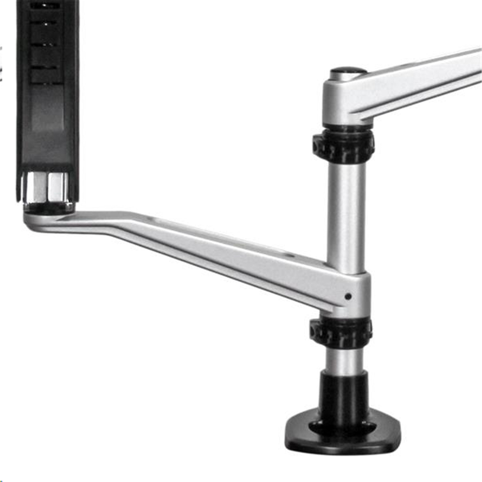 The desk-mount monitor arms offer a full range of motion on several axes, letting you tilt, pan and rotate to adjust your viewing angle any time to suit your changing needs. To view longer pages or blocks of code without scrolling, the arms also support landscape-to-portrait display rotation for each monitor. Raising or lowering your monitors is effortless, with the spring-assisted height adjustment. You can adjust the tension to your own preference, using the included Allen keys.