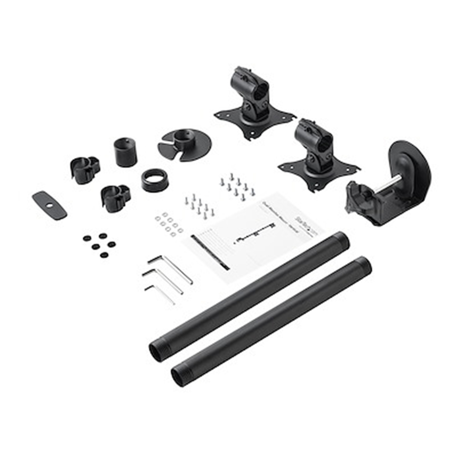The heavy-duty steel monitor mount holds your two monitors securely in place to protect your investment, and provide long-lasting performance. The dual-monitor mount supports two displays 13" to 27" (330 to 686 mm) in size and 22.1 lb. (10 kg) in weight per monitor. The surface finish features a powder coating to help resist scratches.