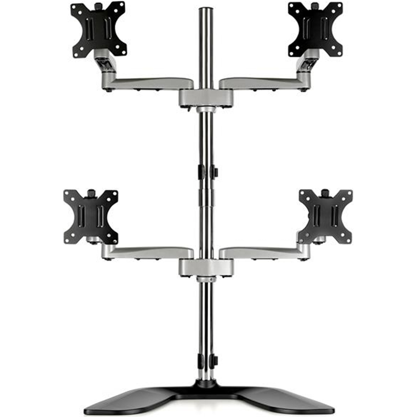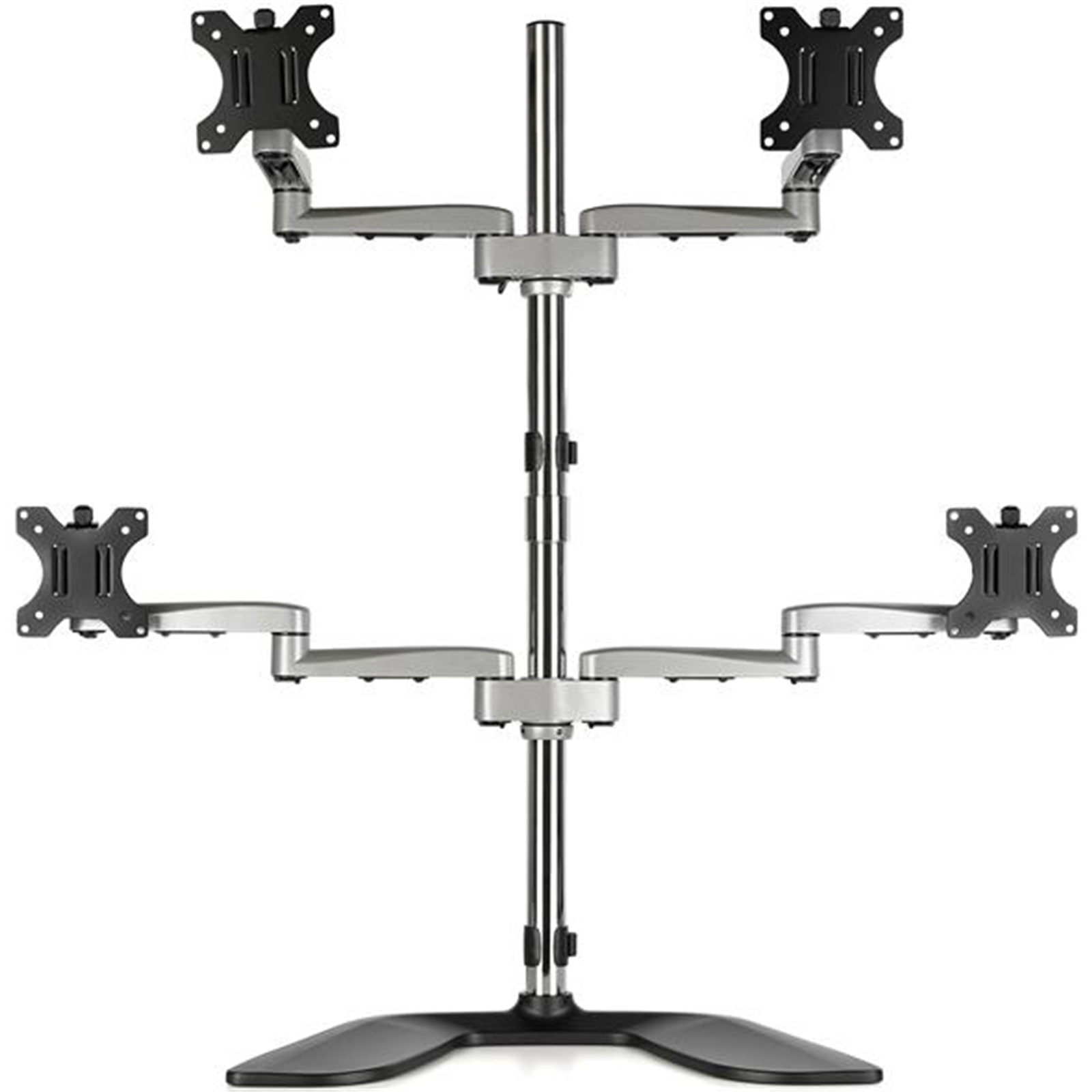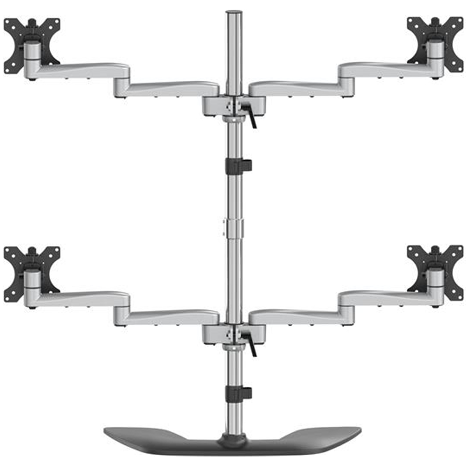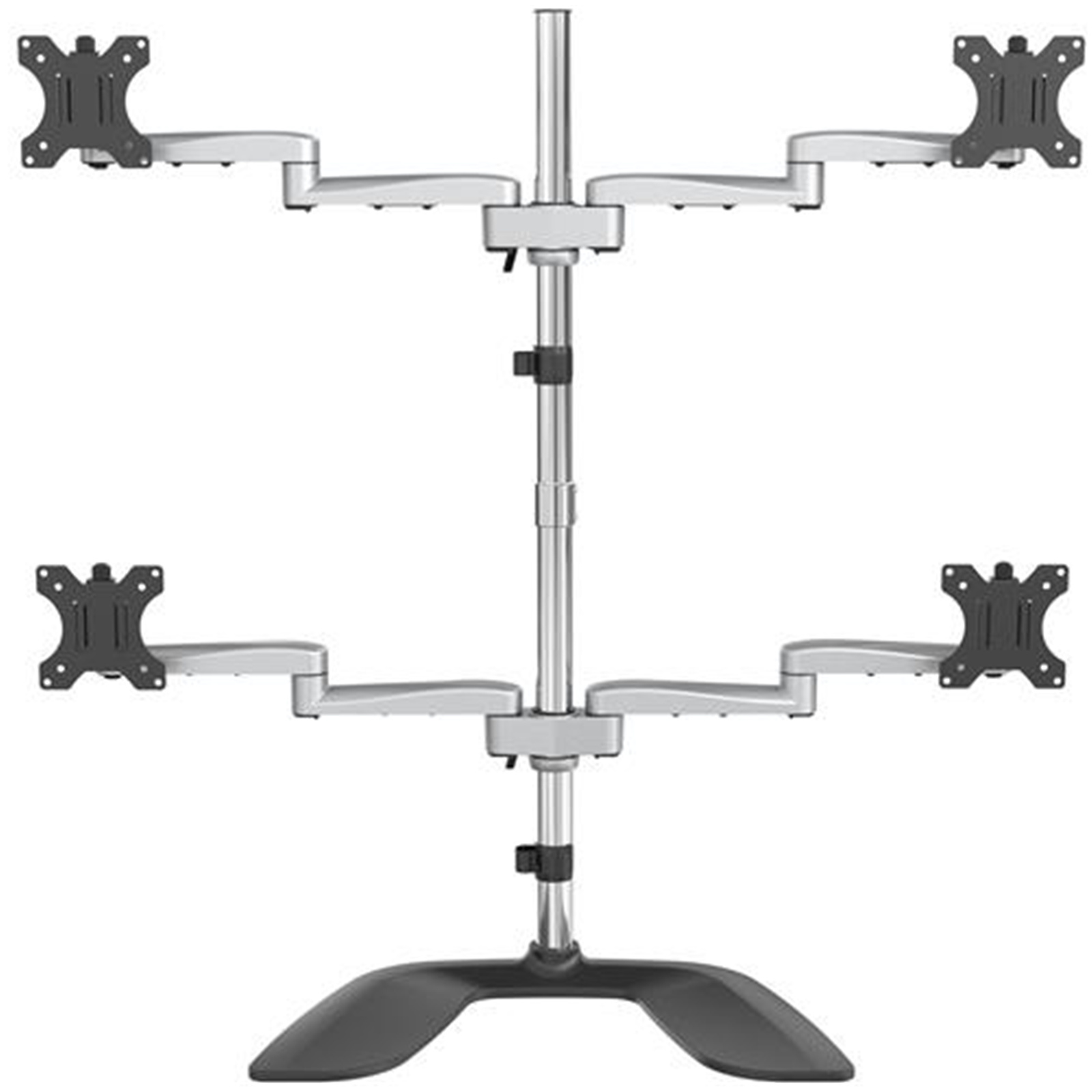 Boost productivity and customize your workspace with this quad-monitor stand, suspending four monitors above your desk. Enjoy optimum viewing with four articulating monitor arms,providing a wide range of motion. The free-standing base gives you flexibility in placing your setup within your workspace.