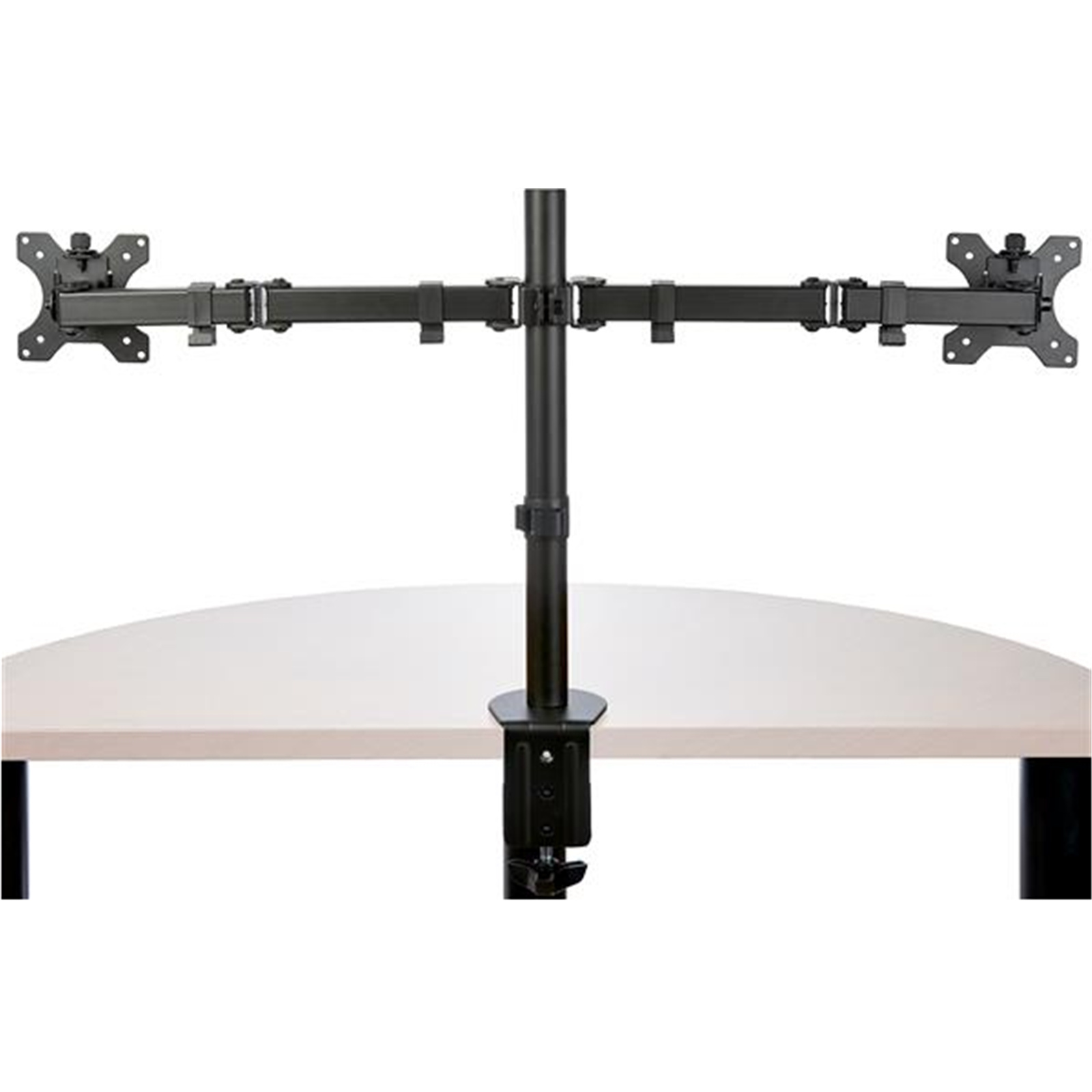 Work in comfort while saving space. This highly functional desk mount dual monitor arm brings you a cost-effective and versatile solution to an ergonomic workspace. Enjoy a wide range of motion with the double-jointed crossbar design plus tilt, swivel, rotation and height adjustment.