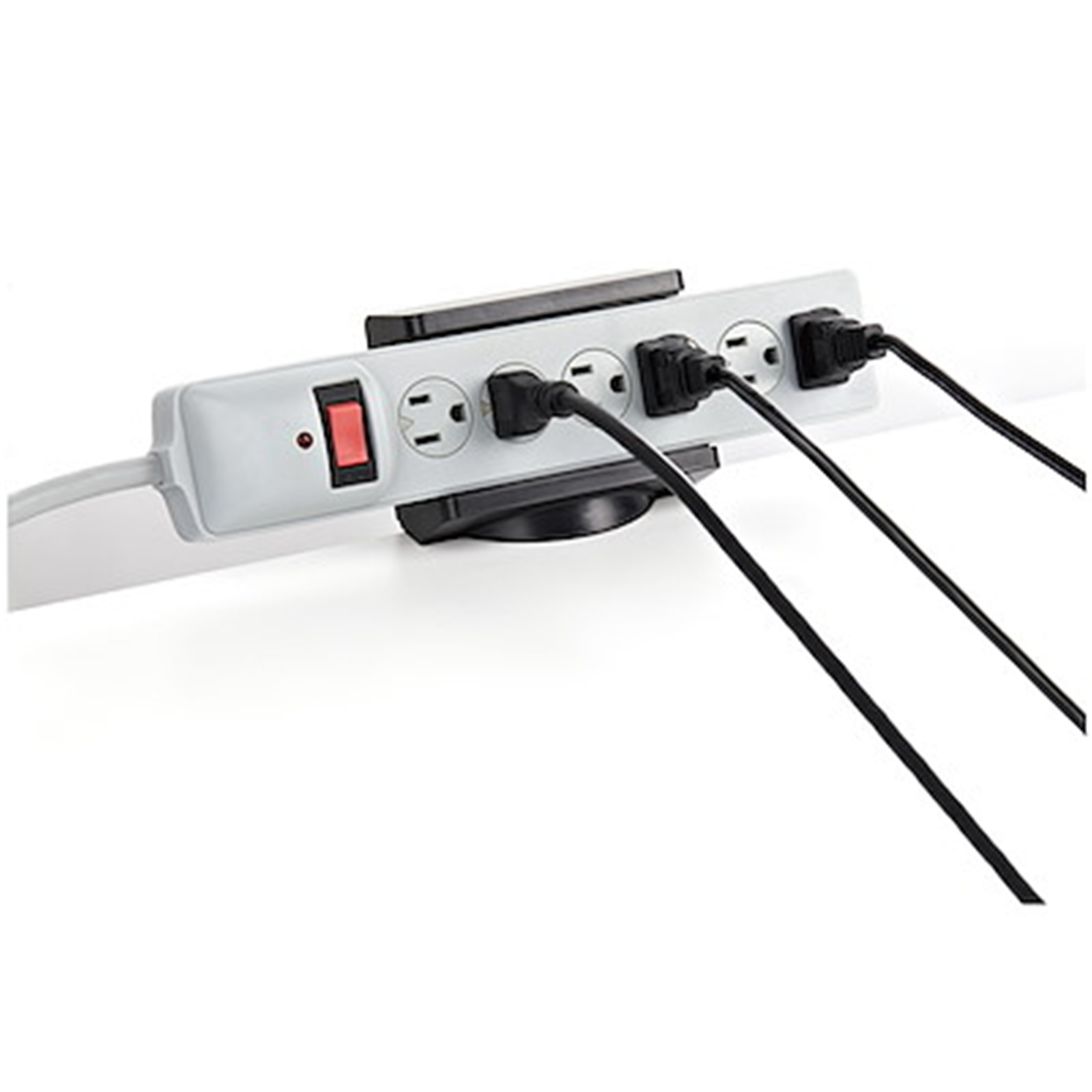 Save time and effort every day by keeping your power outlets close at hand. The clamp on power strip holder attaches easily to desks, tables, counters and other flat surfaces up to 2" (50 mm) thick. No more reaching under the desk to access your power cords. Plus, keeping power cords off the floor means they stay cleaner.