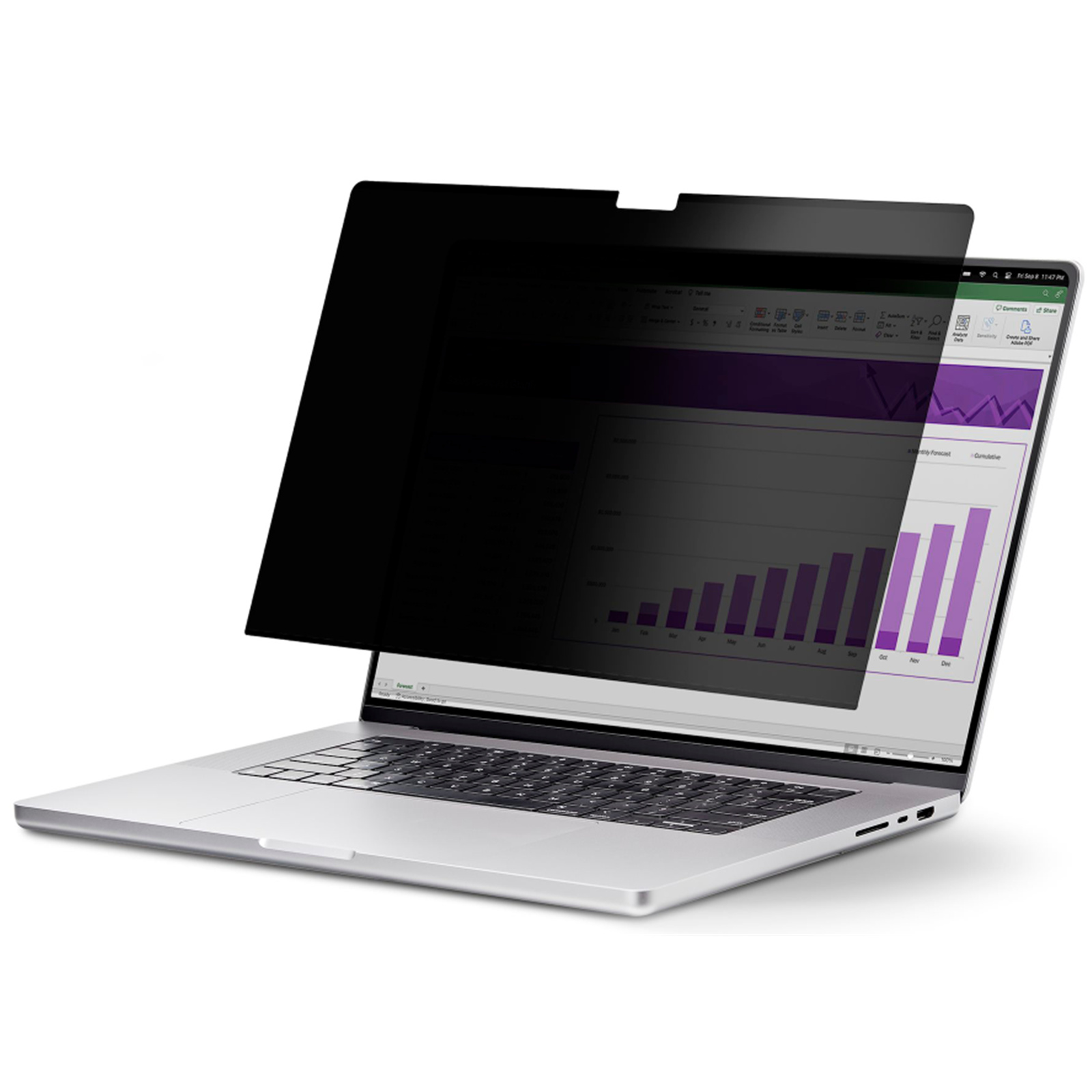 Attach the privacy screen shield using the slim built-in magnetic strips. Included protective sleeve to stow away/protect the privacy screen from damage when not in use.