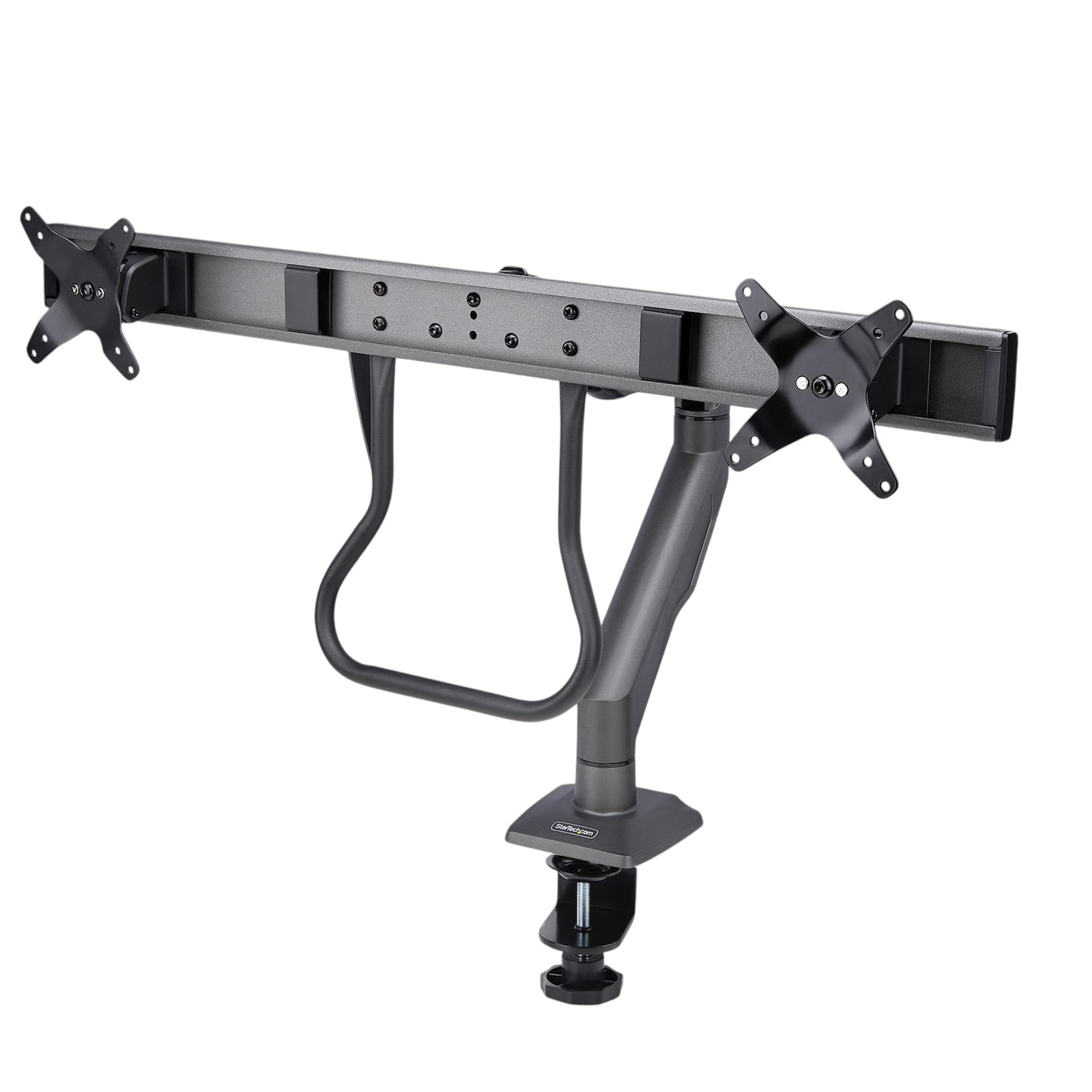 - Crossbar design with built-in handle enables moving the dual monitor setup without realigning the monitors