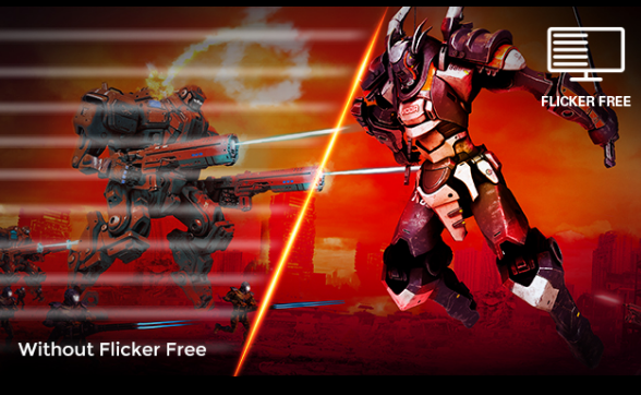 Flicker-free technology reduces flicker to give you a more comfortable gaming experience. Normal LED-backlit monitors adjust brightness using PWM (Pulse Width Modulation) which causes flickering and results in eye discomfort over long periods oftime. AOC flicker-free technology uses a DC (Direct Current) backlight system to provide a more comfortable and healthier viewing experience, minimizing the effects of eye fatigue during work hours.