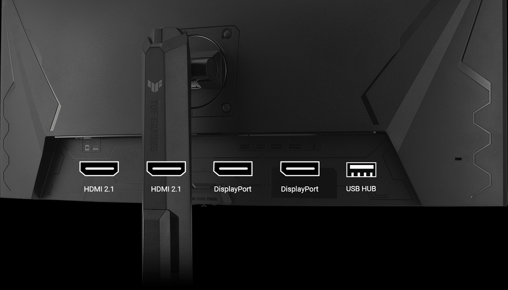 A multitude of connectivity options includes two HDMI® 2.1 ports, two DisplayPortTM 1.4, and a USB hub, ensuring wide compatibility with a variety of input sources.