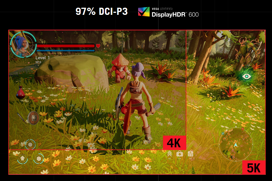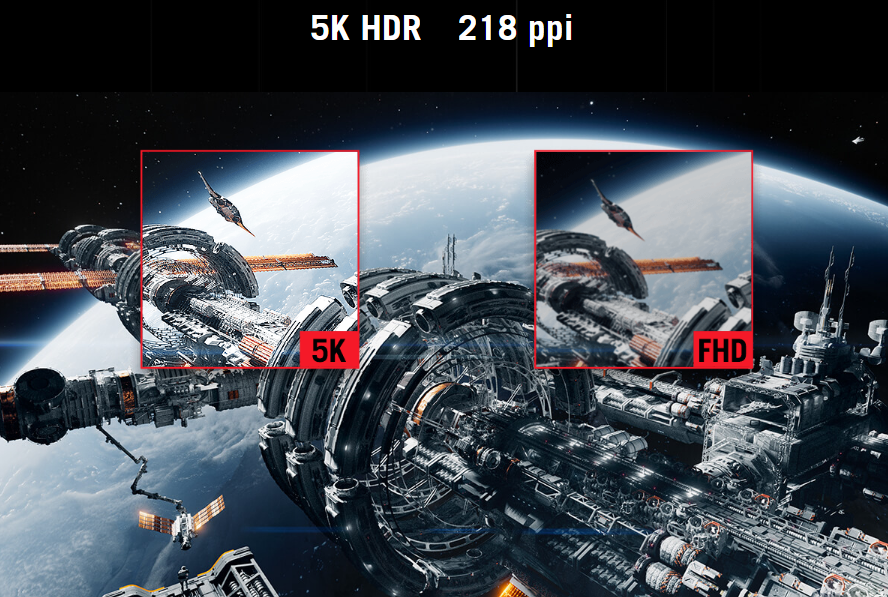 The 5120 x 2880 resolution Fast IPS display boasts 218ppi, 180Hz (OC) refresh rate, and VESA DisplayHDR™ 600 certification-all to deliver stunningly vibrant, supersharp visuals for ultimate gaming immersion in astounding 5K.