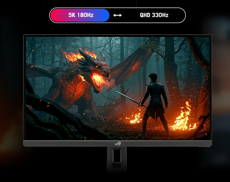 The ROG Strix 5K XG27JCG allows you to easily switch between breathtaking 5K at 180Hz for immersive gaming and cinema-like entertainment or QHD at 330Hz for ultra-responsive, blazing-fast gameplay. Both modes deliver swift 0.3ms gray-to-gray response time for flawless, smooth action.