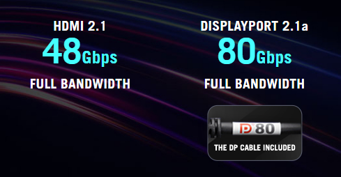- Extensive connectivity options include DisplayPort™ 2.1 UHBR20 with full 80Gbps bandwidth and HDMI® 2.1
