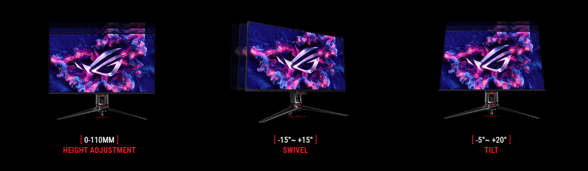 ROG Swift OLED PG32UCDMR gaming monitor ― 32-inch (31.5 inch viewable) 4K (3840 x 2160) QD-OLED panel, 240 Hz, 0.03 ms (GTG), G-SYNC® compatible, custom heatsink, Neo Proximity Sensor, uniform brightness, 99% DCI-P3, OLED Care Pro, 90 W Type-C®, and ASUS DisplayWidget Center, DisplayPort™ 2.1a UHBR20 (80Gbps full bandwidth)