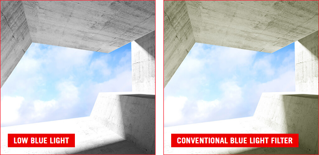 The new hardware-based ASUS Low Blue Light technology reduces potentially harmful high-energy blue-light emissions while offering color performance that's better than monitors with software-based filtering solutions.