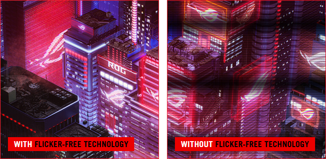 TÜV Rheinland-certified ASUS Flicker Free technology eliminates flicker, ensuring comfortable viewing experiences. This technology helps minimize eyestrain and other potential issues typically associated with extended hours of viewing.