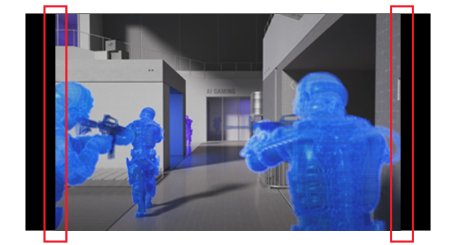 Dynamically detects the boundary of the black bars and reduces the brightness and also slightly shifts the pixel of the near borders.