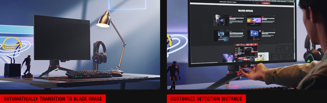 - New ASUS OLED Care Pro functions with Neo Proximity Sensor that precisely detects when the user is away, switching to a black screen to reduce the risk of burn-in