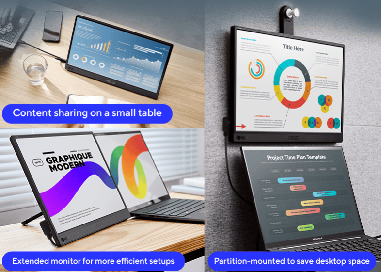 ASUS ZenScreen™ is ideal for life on the road. This sleek portable display is light weight and has a slim profile, so it fits easily in any travel bag and is ready for productivity, anytime and anywhere.