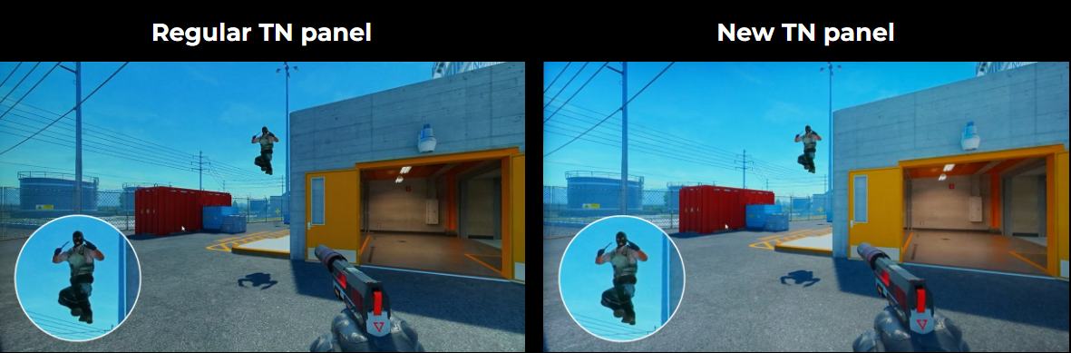 At the resolutions most commonly used by pro players (1280x960 for CS2 and 1920x1080 for VALORANT), our Fast TN panel with native FHD resolution provides better image sharpness due to different pixel arrangement, making it easier to identify the outlines of enemies.