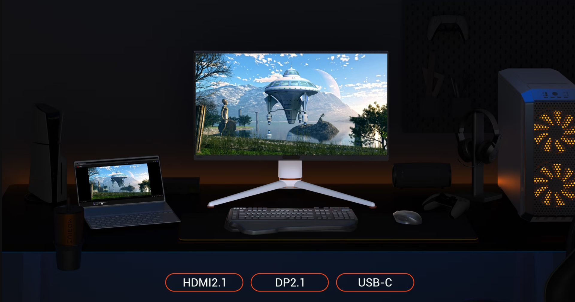Experience seamless connectivity with DP 2.1, HDMI 2.1, and USB-C to link your battle stations. Shift through the built-in KVM (Keyboard, Video and Mouse) effortlessly among your devices.