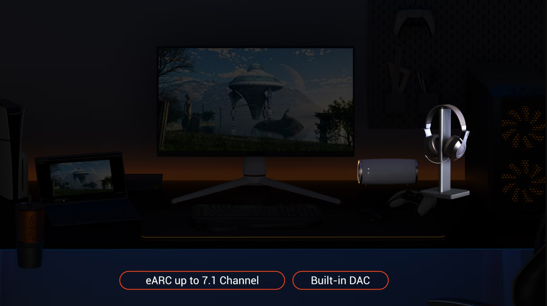Address console sound with our built-in eARC gaming monitors supporting up to 7.1 channels. Additionally, experience exceptional audio quality through the built-in DAC, even when using headphones.