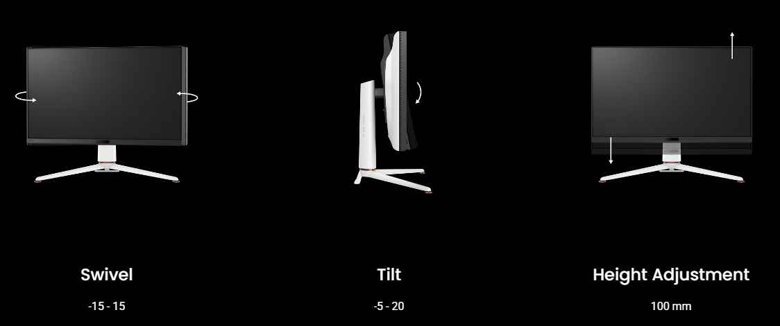 Flexibly adjust the monitor's height, tilt, and swivel to achieve the perfect comfort level for you.