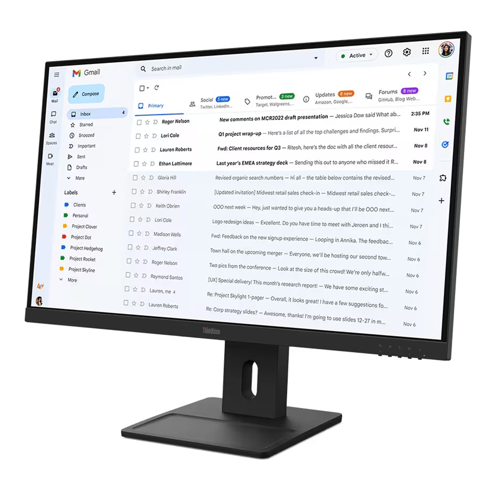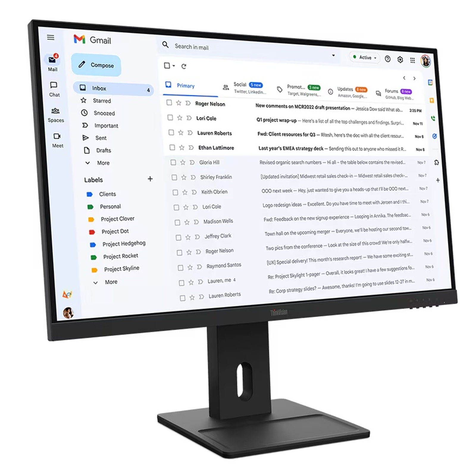 Work comfortably for long hours without suffering from eye fatigue with the monitor's hardware low-blue light and flicker-free technology.