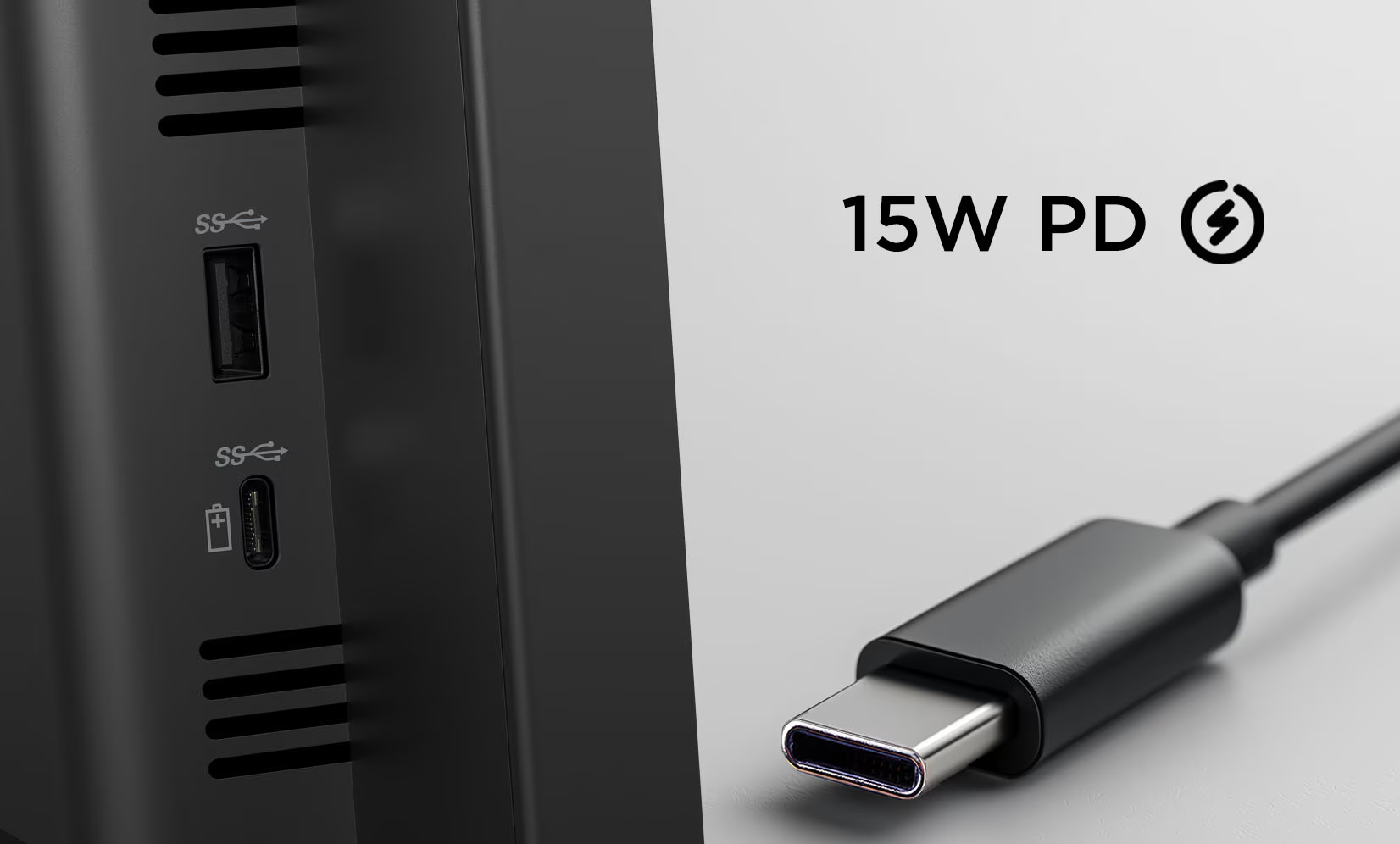 Connect with a plethora of devices using the ThinkVision USB hub, unlocking greater productivity for your workflows, while utilizing the USB - C downstream port for up to 15W PD charging.