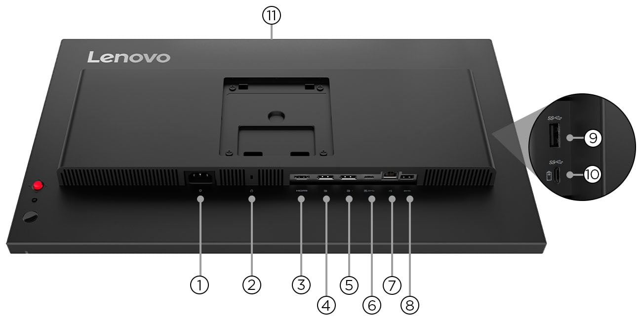 Connect to the ThinkVision Modular MC60 Webcam and MS30 Soundbar via the top-mounted USB-A port to take enhance your audio and camera quality. Relish a neat and organized work desk with the monitor's support for mounting the Lenovo Tiny PC.