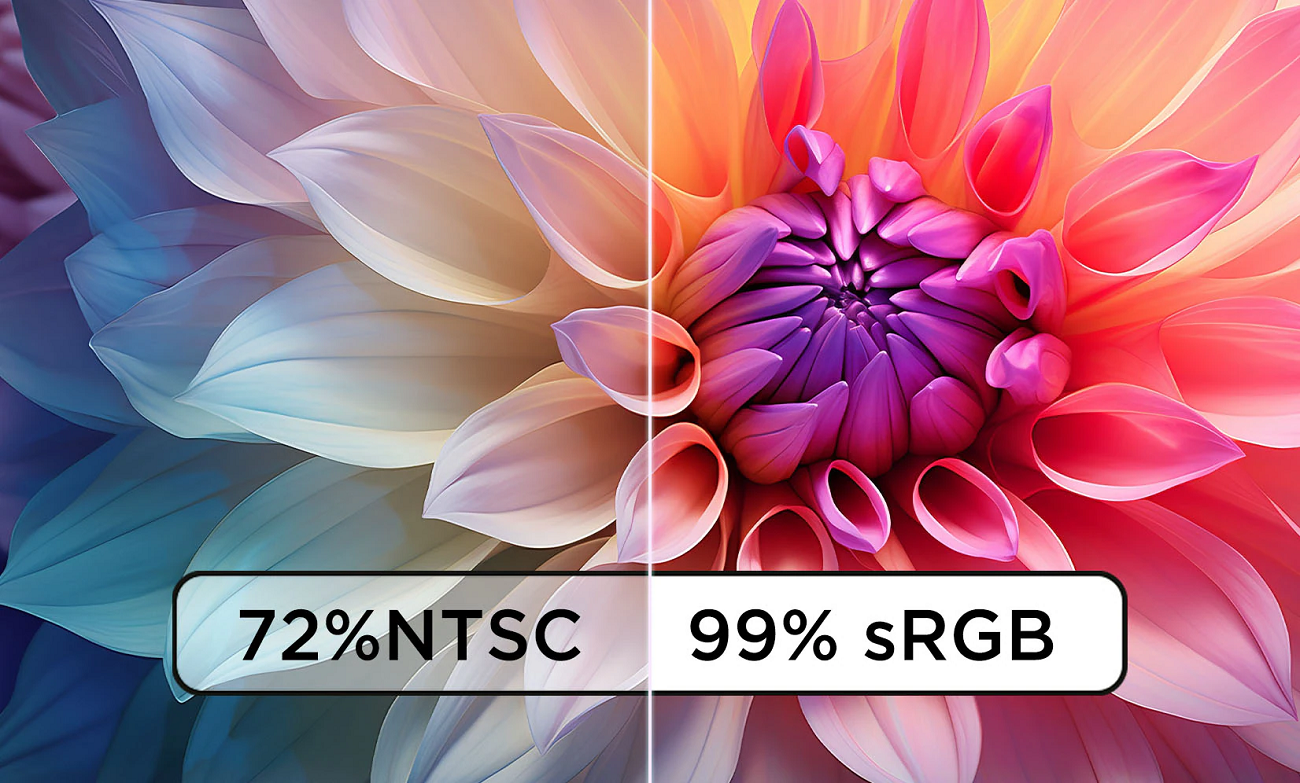Relish color accurate and immersive work content with the monitor's 99% sRGB and 99% BT.709 color space coverage.