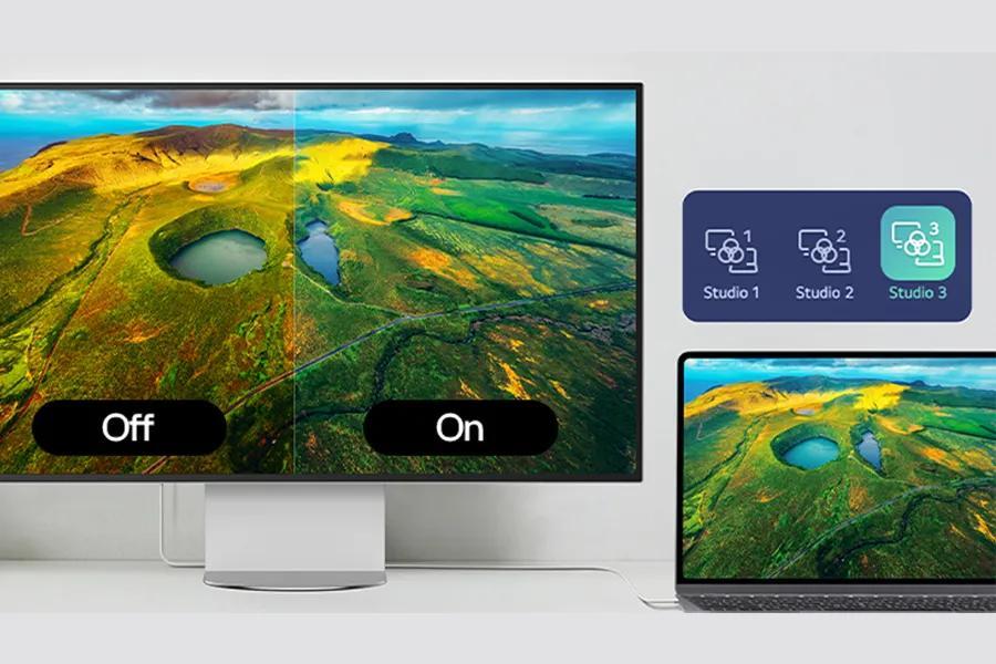 Built for Mac compatibility, Studio Mode offers three calibrated color presets that fine-tune your UltraFine evo 6K display for a more consistent, unified viewing experience. It adjusts subtle tone variations, helping ensure your screen stays consistent with your creative intent-from edge to edge.