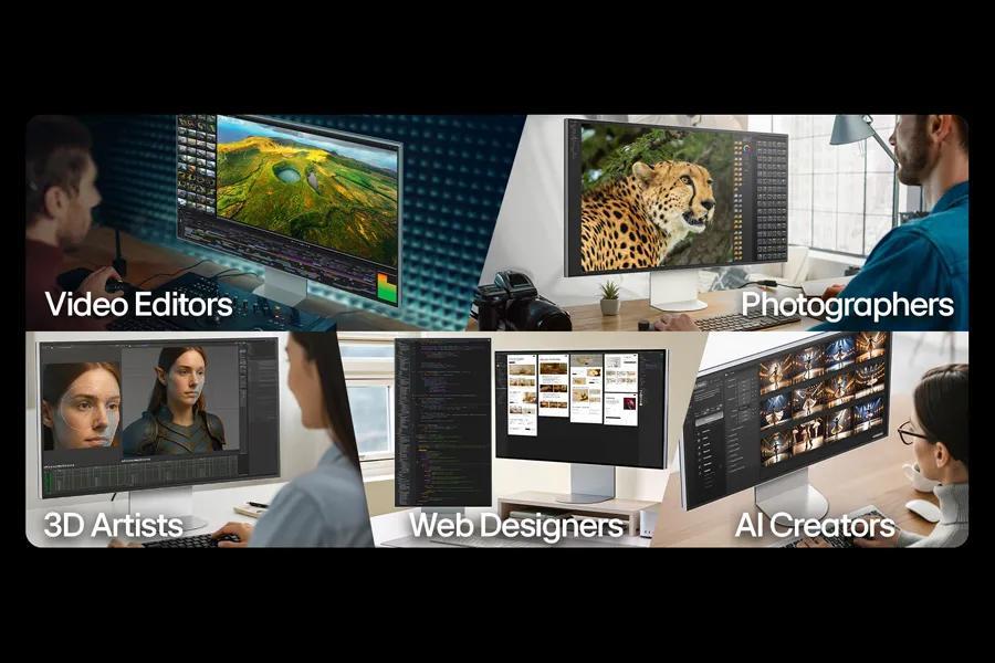 Whether you're editing 6K video, retouching photos, sculpting in 3D, designing responsive web layouts, or training AI visuals-the Mac and Windows compatible UltraFine™ evo display supports your craft with immaculate color and impeccable visual fidelity.