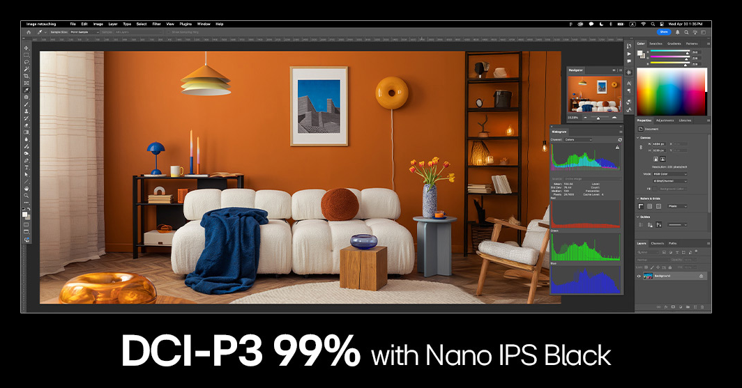 Nano IPS Black technology boosts the standard IPS contrast ratio from 1000:1 to 2000:1. This enhancement delivers more vibrant colours and sharper details across objects, shadows, and backgrounds. Enjoy deeper blacks and richer shadows with consistent colour expression from edge to edge - bringing a heightened sense of realism to your visual content.