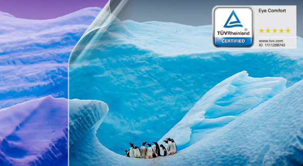 This display has earned TÜV Rheinland's 5-Star Eye Comfort certification under the new Eye Comfort 3.0 standard, reflecting its commitment to visual well-being. It combines a high refresh rate, precise colour accuracy, and integrated low blue light technology - utilising both RGB hardware and software tuning - to minimise harmful emissions without compromising colour fidelity.