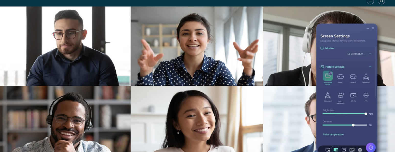 The LG Switch app enhances your monitor experience for both work and play. Easily personalise image quality and brightness with the intuitive picture wizard. Plus, you can split the screen into 11 parts and quickly launch your video call platform for added convenience.