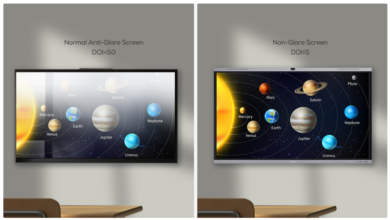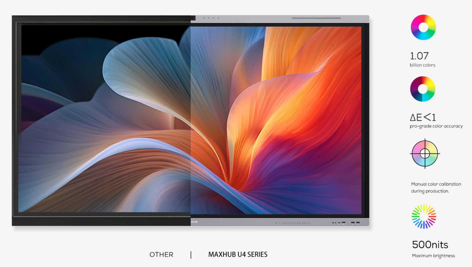 The MAXHUB U4 Series redefines visibility in bright environments with its advanced Non-Glare Screen technology, minimizing reflections for optimal clarity. With 500 nits peak brightness, it delivers vivid details and an immersive viewing experience, even in sunlit classrooms, ensuring comfort and engagement anytime, anywhere.